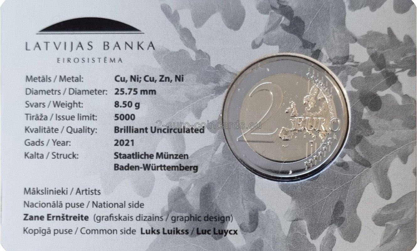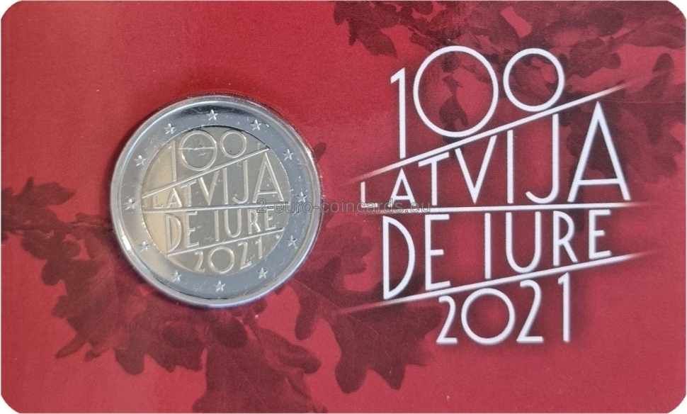 Na vzore sa nachádza umelecký nápis „100 Latvija de iure 2021“, ktorý zahŕňa názov krajiny "LATVIJA" aj rok vydania "2021".