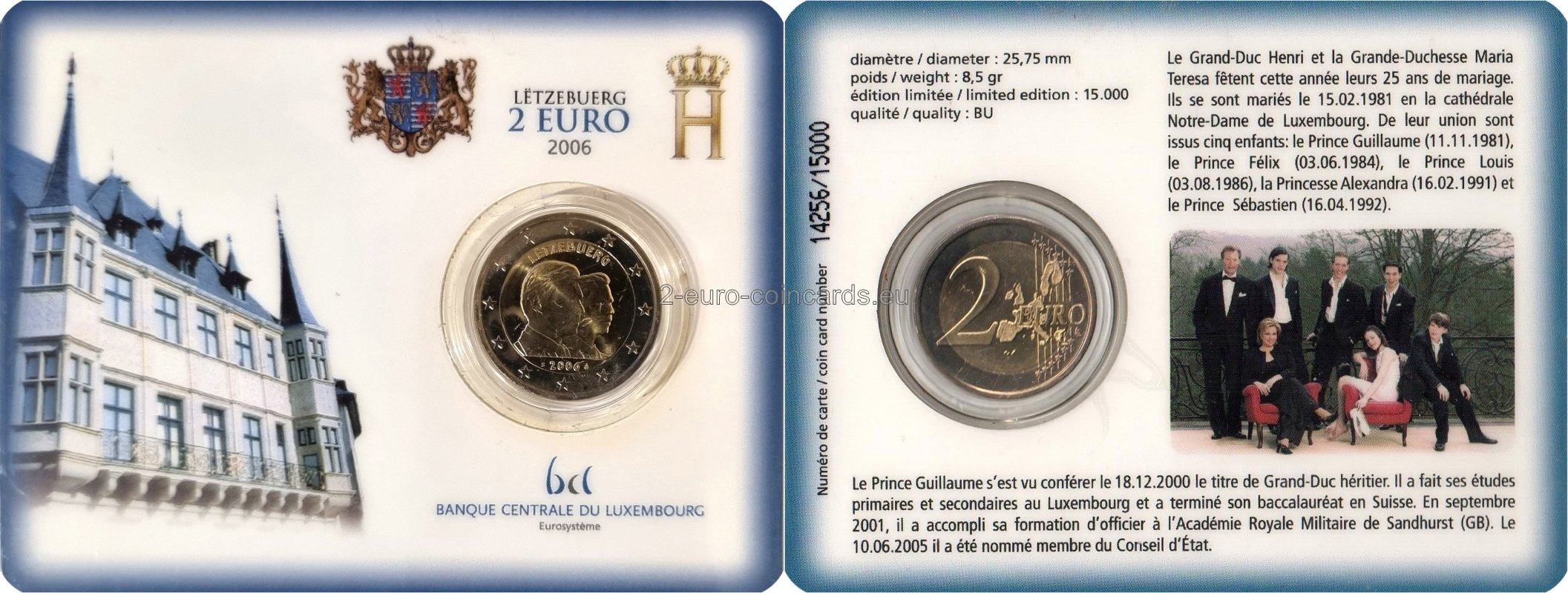 Na ľavej strane vnútornej časti mince je vyobrazená postava jeho kráľovskej výsosti, veľkovojvodu Henricha, ktorý pozerá vpravo na jeho kráľovskú výsosť, dediča, veľkovojvodu Viliama na pravej strane vnútornej časti mince. Letopočet 2006 sa nachádza pod vyobrazeniami obidvoch kráľovských výsostí. Vľavo od letopočtu je písmeno "S", ktoré označuje krajinu, kde bola minca vyrazená (Suomi - Fínsko), a vpravo logo fínskej mincovne Vantaa (roh hojnosti). Slovo „LËTZEBUERG“ sa nachádza nad vyobrazeniami obidvoch kráľovských výsostí pozdĺž horného okraja vnútornej časti mince.