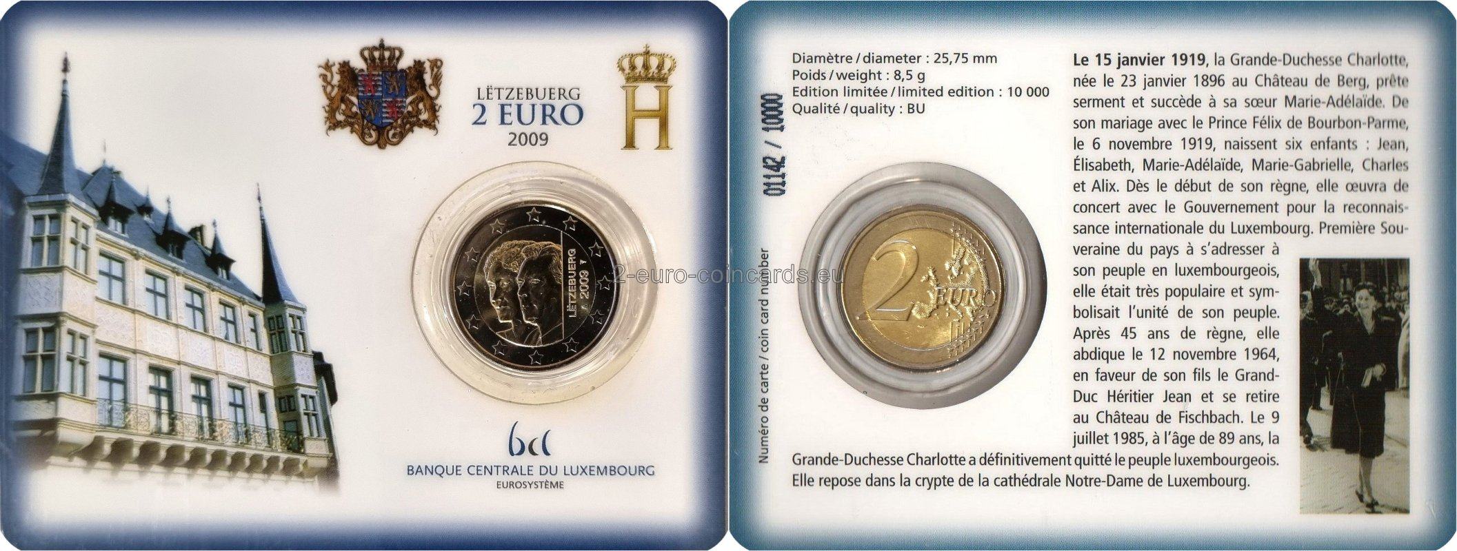 Na ľavej strane vnútornej časti mince je zobrazený dvojitý portrét Jeho kráľovskej Výsosti, veľkovojvodu Henricha a veľkovojvodkyne Šarloty, obaja hľadia doľava. Názov krajiny „LËTZEBUERG“ a rok „2009“, na ktorého stranách je značka riaditeľa Kráľovskej holandskej mincovne v Utrechte (Maarten Brouwer, plachetnica) a značka mincovne (Merkúrová palica), sú zobrazené zvisle na pravej strane vnútornej časti mince.