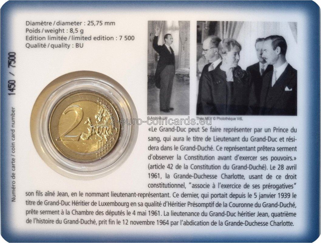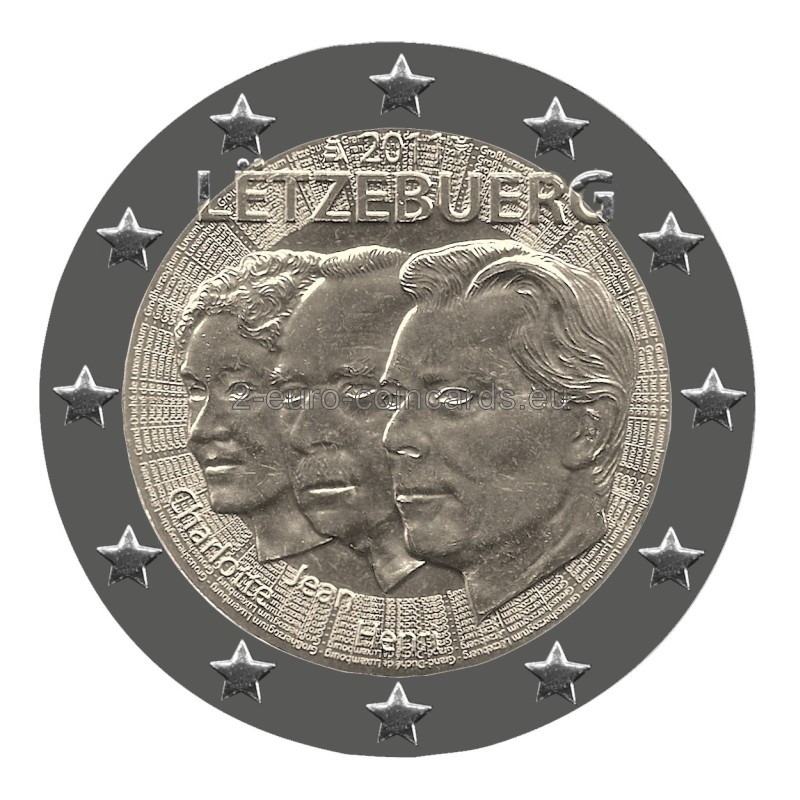 Minca pripomína 50. výročie odo dňa, kedy veľkovojvodkyňa Šarlota vymenovala svojho syna Jána za „lieutenant-représentant“. Na pravej strane vnútorného poľa mince je podobizeň jeho kráľovskej výsosti, veľkovojvodu Henricha, hľadiaceho vľavo, vyobrazená v popredí pred zobrazením veľkovojvodu Jána a veľkovojvodkyne Šarloty. Nad týmito troma podobizňami je nápis „LËTZEBUERG“. V hornej časti sa nachádza letopočet „2011“, po jeho stranách je značka Kráľovskej holandskej mincovne v Utrechte (Merkúrova palica) a značka jej riaditeľa (Maarten Brouwer, plachetnica). Pod príslušnými podobizňami sú uvedené mená kráľovských výsostí: "Henri", "Jean" a "Charlotte". Na okraji centrálneho disku sú mikrotextom vyryté v troch úradných jazykoch - nemčina, francúzština a Luxembursko: "Großherzogtum Luxemburg - Grand-Duché de Luxembourg - Groussherzogtum Lëtzebuerg".