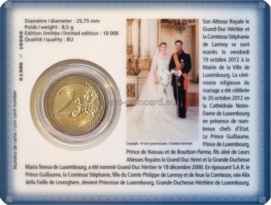 Na ľavej strane vnútornej časti minca znázorňuje podobizeň jeho kráľovskej výsosti veľkovojvodu Henricha a na pravej strane vnútornej časti podobizeň budúceho veľkovojvodu Viliama sčasti prekrývajúcu podobizeň grófky Štefánie. Na spodnej strane vnútornej časti mince sa objavujú nápisy „PRËNZENHOCHZAÏT“ a „LËTZEBUERG“ a rok „2012“, sprevádzané značkou Kráľovskej holandskej mincovne v Utrechte (Merkúrova palica) a značkou jej riaditeľa (Maarten Brouwer, plachetnica).