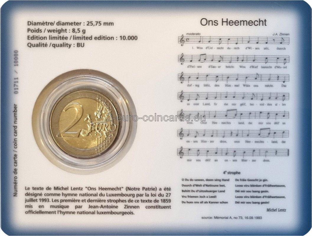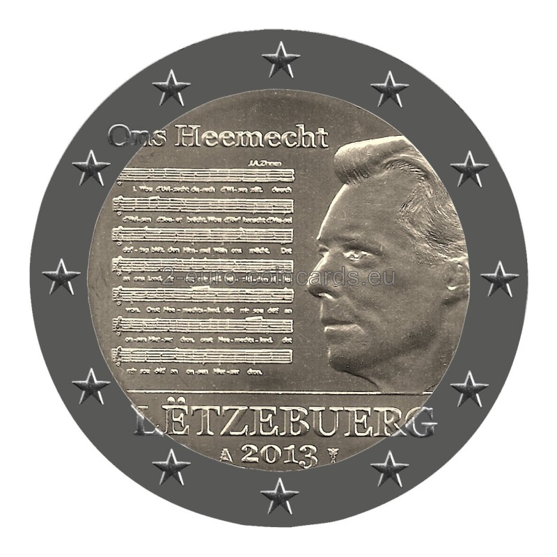 Na pravej strane vnútorného poľa mince je podobizeň Jeho kráľovskej Výsosti veľkovojvodu Henricha hľadiaceho doľava a na ľavej strane je notový záznam spolu s textom národnej hymny. V hornej časti vnútorného poľa mince je názov verša, ktorý sa stal štátnou hymnou veľkovojvodstva „Ons Heemecht“. V spodnej časti je uvedený názov vydávajúcej krajiny „LËTZEBUERG“ a rok „2013“ spolu so značkou Kráľovskej holandskej mincovne v Utrechte (Merkúrova palica) a značkou jej riaditeľa (Maarten Brouwer, plachetnica).