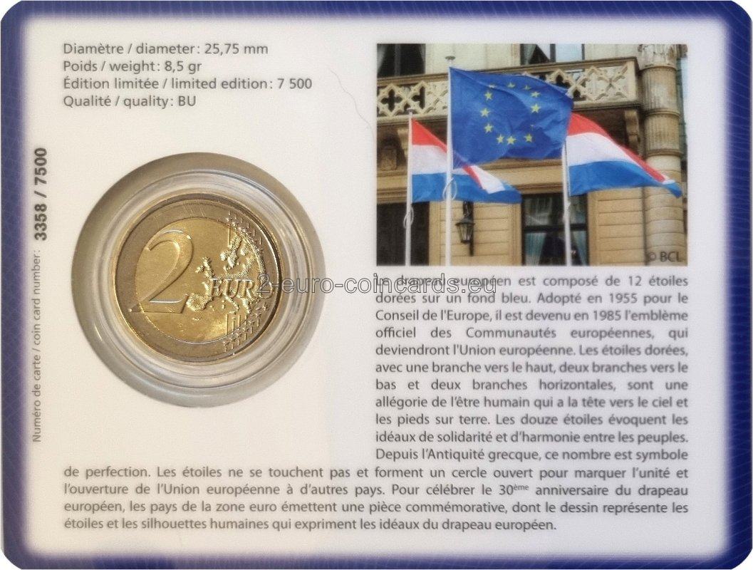 Štvrtá jednotná numizmatická séria je venovaná Európskej vlajke ktorá symbolizuje Európsku úniu a v širšom zmysle aj identitu a jednotu Európy. Má obdĺžnikový tvar s pomerom 2:3. Na modrom pozadí je 12 zlatých päťcípych hviezdičiek, ktoré sa podobajú číslam na ciferníku hodín. Počet hviezd nemá nič spoločné s počtom členských krajín, kruh je symbolom jednoty. Číslo 12 je tradične symbolom dokonalosti, úplnosti a jednoty. Ich počet zostáva rovnaký bez ohľadu na rozšírenie EÚ. Rada Európy podporila myšlienku, že vlajka, ktorú prijala, reprezentuje Európu ako celok, a preto vyzvala ostatné európske organizácie, aby prijali túto vlajku za svoj vlastný symbol. V roku 1983, keď sa v Miláne stretli hlavy štátov a vlád Európskych spoločenstiev, Európsky parlament uznal vlajku Rady Európy za symbol Európskych spoločenstiev. S formálnym súhlasom Rady Európy bola európska vlajka prvýkrát vztýčená 29. mája 1986 pred sídlom Európskej komisie za zvukov európskej hymny. So vznikom Európskej únie sa táto vlajka stala aj jej vlajkou. Na oslavu tridsiateho výročia vlajky EÚ ministri financií eurozóny rozhodli, že členské štáty eurozóny by mali vydať pamätné mince v hodnote 2 EUR s použitím spoločného motívu na národnej strane. Víťazný návrh vybrali občania a obyvatelia eurozóny vo verejnom internetovom hlasovaní. Mali na výber z piatich návrhov, ktoré boli vopred vybrané odbornou porotou na základe súťaže návrhov európskych mincovní, a vybrali motív, ktorý vytvoril pán Georgios Stamatopoulos, profesionálny návrhár banky Bank of Greece.
