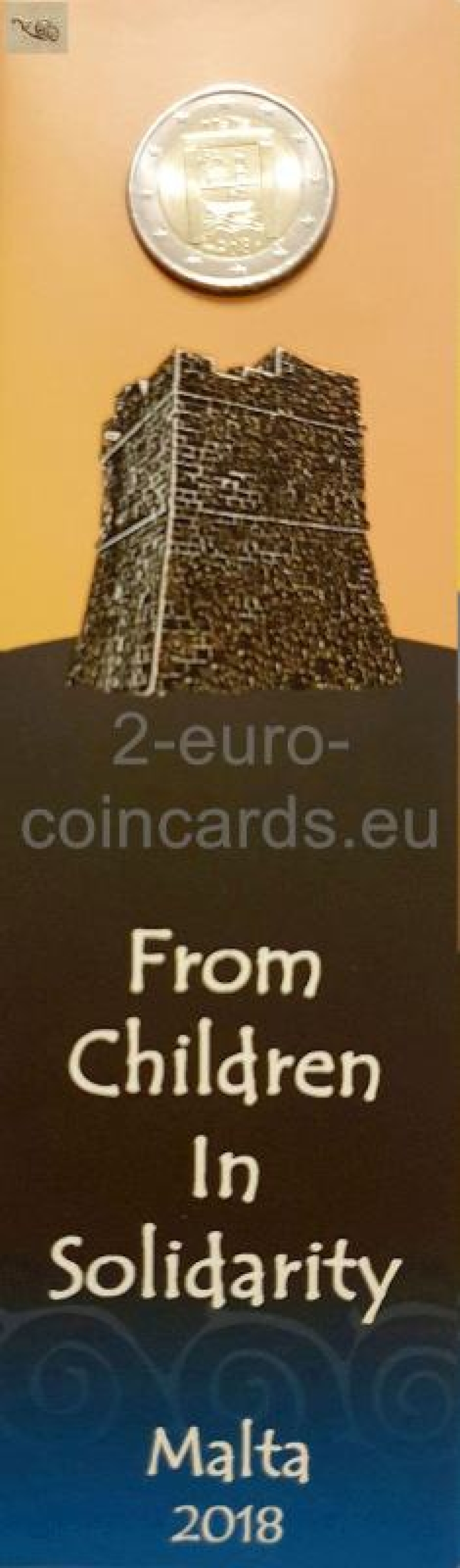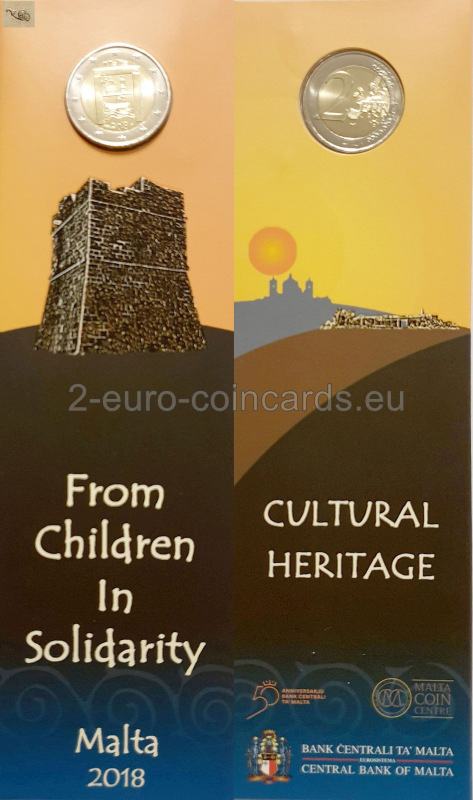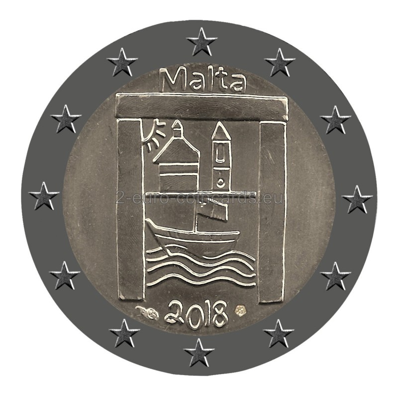 Vzor, ktorého autorkou je žiačka, zobrazuje rozličné námety vlastné maltskému dedičstvu, medzi ktoré patrí: náznak pravekých chrámov, ktoré sú najstaršími samostatne stojacimi stavbami na svete, dóm a veža kostola predstavujúce typický prvok siluety maltského mesta a dediny, ako aj zobrazenie tradičnej maltskej loďky, ktorá sa plaví pod maltskou vlajkou. V hornej časti vnútorného kruhu mince sa nachádza názov vydávajúcej krajiny „Malta“ a v spodnej časti rok „2018“. Okolo textu 2018 sa nachádzajú značky Parížskej mincovne Pessac (roh hojnosti, vľavo) a jej hlavného rytca (Yves Sampo, päťuholník, vpravo). Minca bola vydaná v blistri v tvare záložky do knihy.