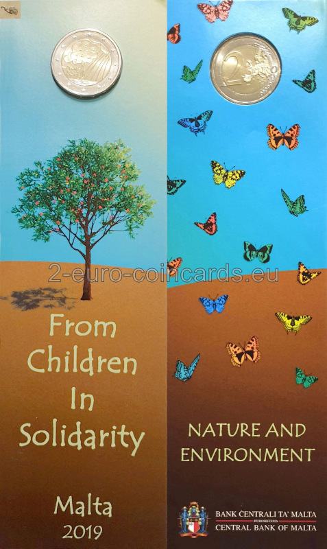 Na vzore, ktorého autorom je študent strednej školy, je znázornený ovocný strom a štylizované zobrazenie slnka. Vľavo dole je uvedený názov vydávajúcej krajiny „MALTA“ a pod ním rok vydania „2019“. Okolo textu 2019 sa nachádzajú značky Parížskej mincovne Pessac (roh hojnosti, vľavo) a jej hlavného rytca (Yves Sampo, päťuholník, vpravo). Mincu bola vydaná v blistri v tvare záložky do knihy.