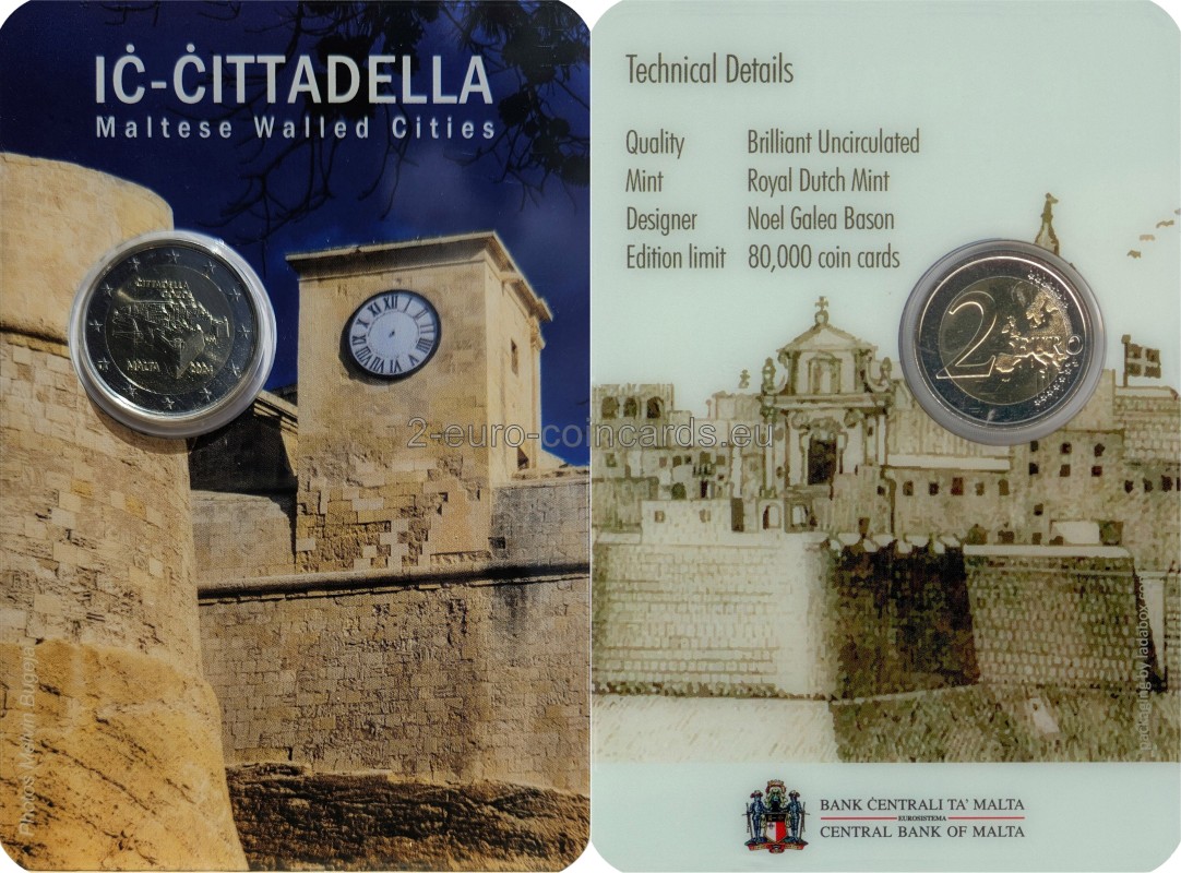 Táto minca má byť súčasťou série venovanej maltským mestám s hradobným opevnením, ako napr. Mdina a Valletta, ktoré sú neoddeliteľnou súčasťou maltského a európskeho kultúrneho dedičstva. Citadela Victoria (maltsky: Iċ-Ċittadella) je stredoveké opevnenie na Malte, na ostrove Gozo, v meste Victoria. Hradby, ktoré obkolesujú mesto „Ċittadella“ boli vystavané a upravené do svojej súčasnej podoby rádom sv. Jána. Miesto bolo obývané už od doby bronzovej. V staroveku tu pravdepodobne stála akropola púnsko-rímskeho mesta Gaulos alebo Glauconis Civitas. Na akropole stál chrám bohyne Juno. V stredoveku bola akropola premenená na citadelu, ktorá slúžila ako útočisko pre obyvateľov Goza v čase nebezpečenstva. V 15. storočí sa pred jej hradbami začalo rozvíjať predmestie, ktoré dnes tvorí historické jadro mesta Victoria. V 16. storočí však už bola obrana zastaraná a v roku 1551 citadelu dobyli Osmani. V rokoch 1599 až 1622 sa uskutočnila rozsiahla prestavba, ktorá citadelu premenila na pevnosť chránenú delami. Prestavané boli najmä južné hradby, zatiaľ čo severné hradby zostali neporušené a dodnes si zachovali prevažne stredoveký vzhľad. V 17. a 18. storočí existovalo niekoľko plánov na zbúranie celej citadely, ale tieto plány sa nikdy neuskutočnili. Počas francúzskej invázie a následného povstania v roku 1798 sa pevnosť vzdala bez väčšieho boja. Zostala vojenským zariadením až do 1. apríla 1868, keď ju Briti vyradili z prevádzky. Vo vnútri pevnosti sa nachádza niekoľko kostolov vrátane katedrály Nanebovzatia Panny Márie, ktorá bola postavená v rokoch 1697 až 1711. Nachádza sa tu aj biskupská rezidencia, súd a mnoho múzeí.