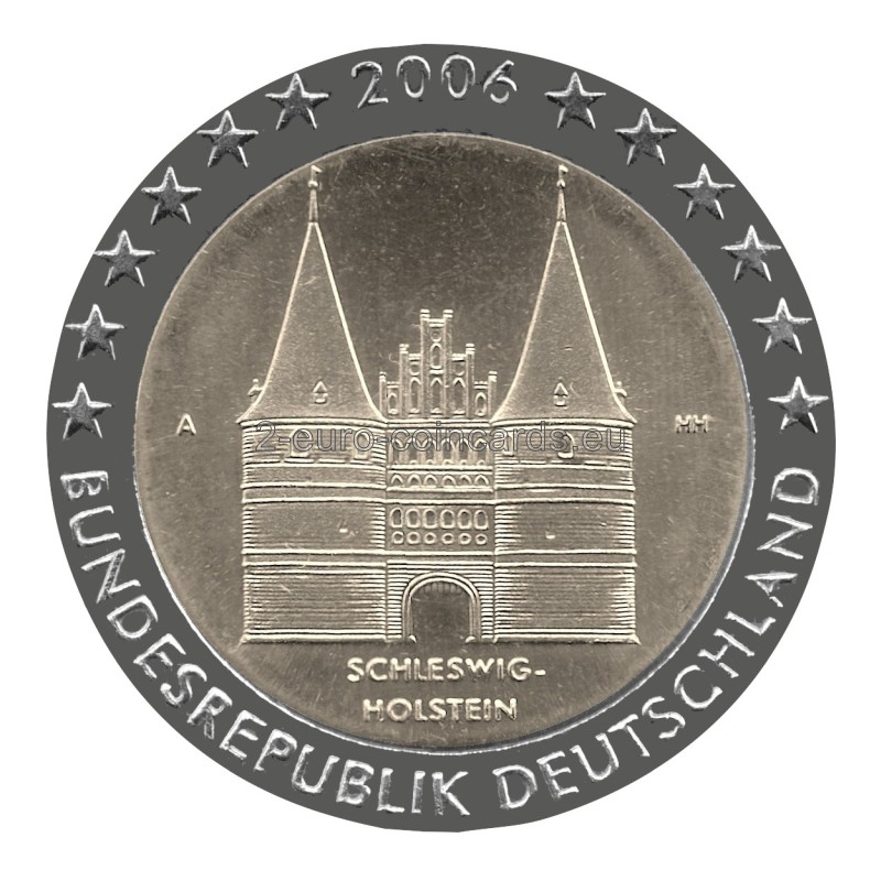 Zobrazenie na vnútornej strane mince znázorňuje stavebnú dominantu mesta Lübeck, mestskú bránu „Holstentor.“ Slovné spojenie „SCHLESWIG-HOLSTEIN“ je zobrazené pod bránou v spodnom výseku vnútornej časti. Iniciály rytca Heinza Hoyera „HH“ sú zobrazené v pravej časti grafického návrhu. V ľavej časti grafického návrhu sa nachádza značka príslušnej mincovne – jedno z písmen A, D, F, G, alebo J. V hornej časti vonkajšieho prstenca mince je vyobrazených dvanásť hviezd ktoré rozdeľuje letopočet razby „2006“. Slová „Bundesrepublik Deutschland“ vytvárajú polkruh v dolnej časti vonkajšieho prstenca.