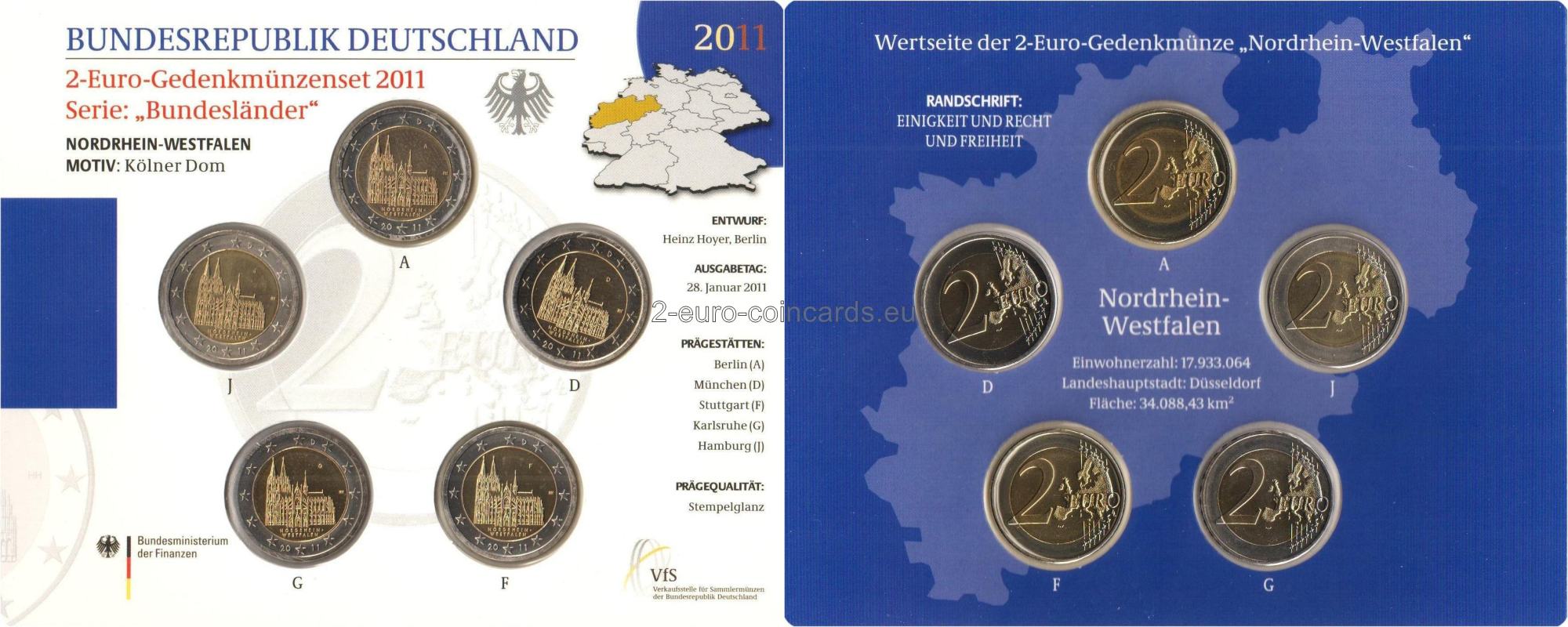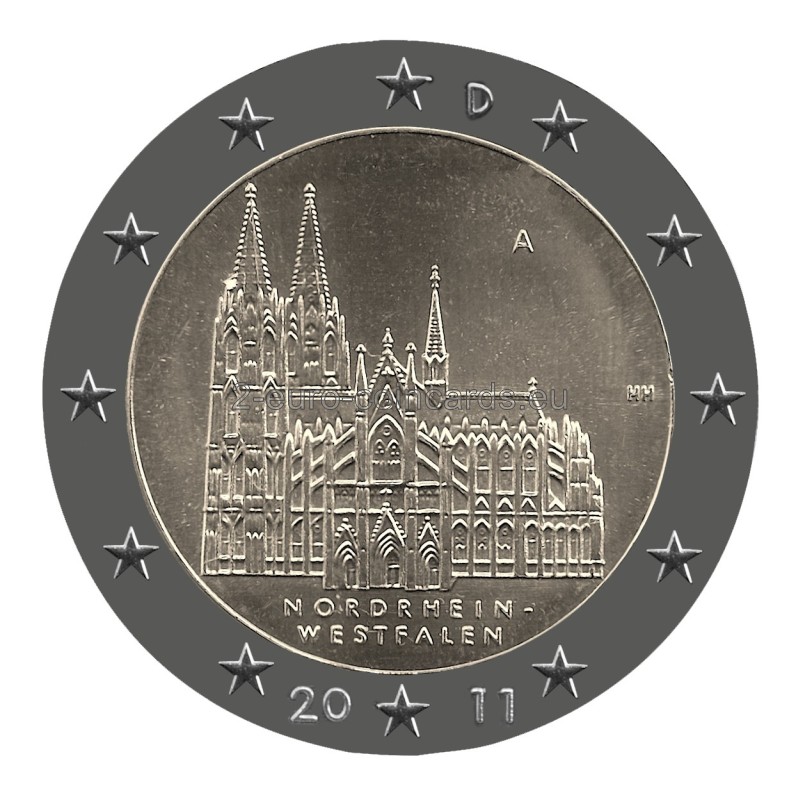 Motív znázorňuje kolínsky dóm v jeho celistvosti ako majstrovské dielo gotickej architektúry s dôrazom na krásu južného portálu. Názov NORDRHEIN-WESTFALEN tesne pod budovou spája zobrazenú budovu so štátom. Značka príslušnej mincovne – jedno z písmen A, D, F, G alebo J sa nachádza vo vnútornej časti mince vpravo hore, iniciály umelca Heinza Hoyera (HH) sa nachádzajú vo vnútornej časti vpravo.