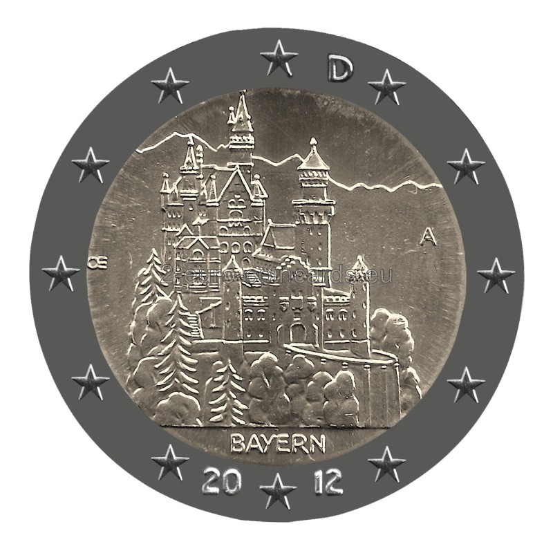 Vo vonkajšom prstenci mince je vyobrazených dvanásť hviezd vlajky Európskej únie ktoré symbolizujú dokonalosť, celistvosť a ideál jednoty a pripomína aj počet mesiacov a ciferník. Medzi hviezdami v spodnej časti mince je uvedený rok „2012“ a v hornej časti symbol vydávajúceho štátu „D".