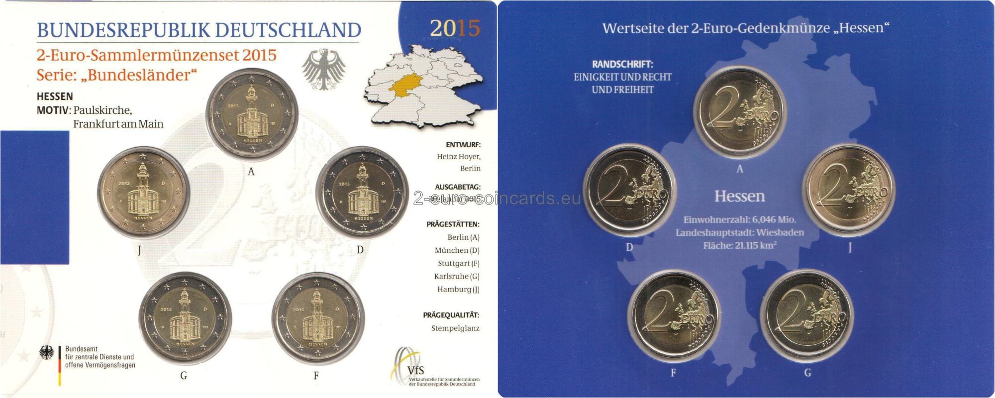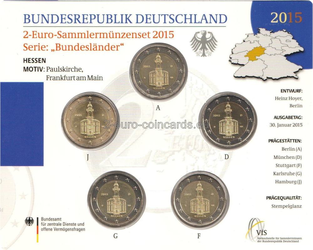 Vzor zobrazuje klasický pohľad na Kostol svätého Pavla vo Frankfurte („Pauluskirche“ bol sídlom prvého slobodne zvoleného zákonodarného orgánu Nemecka v roku 1849 a považuje sa za kolísku nemeckej demokracie), a preto má táto perspektíva najväčšiu hodnotu z rozpoznávacieho hľadiska. Vzor prenikavo znázorňuje napätie medzi dominantnou vežou a oválnou konštrukciou kostola. Trochu predimenzované schodisko ako keby pozývalo a zároveň slúžilo ako opora pod ním sa nachádzajúcemu nápisu „HESSEN“ (Spolková republika Hesensko, kde sa Kostol svätého Pavla nachádza). Na vnútornej strane je tiež zobrazený rok „2015“ a vľavo značka mincovne, vyjadrená písmenami A, D, F, G alebo J, ako aj označenie vydávajúceho štátu „D“ a značka rytca (iniciály „HH“ – Heinz Hoyer) vpravo.