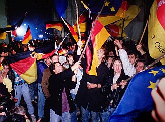 | Ľudia oslavujúci zjednotenie Nemecka Berlíne |