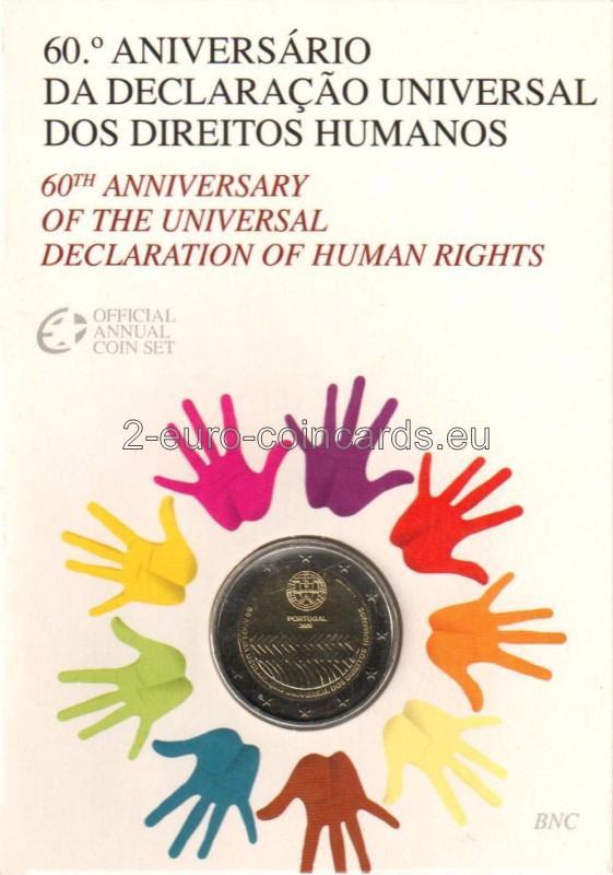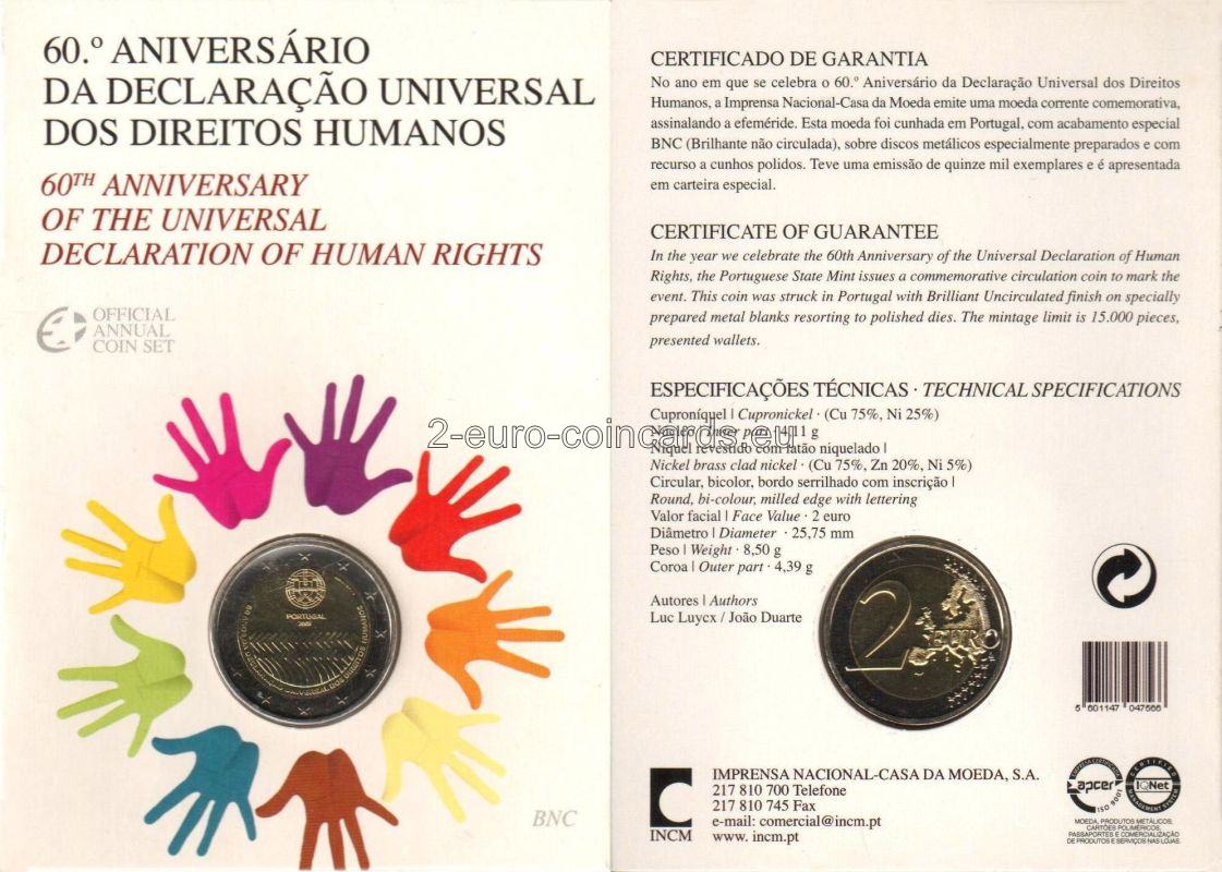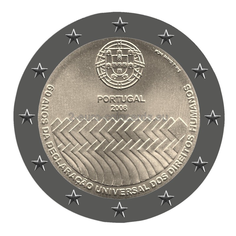 Na vnútornej strane mince je v hornej časti znázornený portugalský štátny znak nachádzajúci sa nad názvom vydávajúceho štátu „PORTUGAL“ a rokom „2008“ a dolnú časť stredu mince vypĺňa geometrický vzor. V dolných dvoch tretinách okraja vnútorného kruhu sa nachádza text: „60 ANOS DA DECLARAÇÃO UNIVERSAL DOS DIREITOS HUMANOS“, po ktorom nasleduje podpis autora napísaný drobným písmom „Esc. J. Duarte" a skratka Portugalskej mincovne - Imprensa Nacional (INCM).