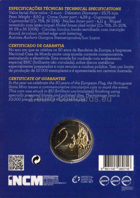 Štvrtá jednotná numizmatická séria je venovaná Európskej vlajke ktorá symbolizuje Európsku úniu a v širšom zmysle aj identitu a jednotu Európy. Má obdĺžnikový tvar s pomerom 2:3. Na modrom pozadí je 12 zlatých päťcípych hviezdičiek, ktoré sa podobajú číslam na ciferníku hodín. Počet hviezd nemá nič spoločné s počtom členských krajín, kruh je symbolom jednoty. Číslo 12 je tradične symbolom dokonalosti, úplnosti a jednoty. Ich počet zostáva rovnaký bez ohľadu na rozšírenie EÚ. Rada Európy podporila myšlienku, že vlajka, ktorú prijala, reprezentuje Európu ako celok, a preto vyzvala ostatné európske organizácie, aby prijali túto vlajku za svoj vlastný symbol. V roku 1983, keď sa v Miláne stretli hlavy štátov a vlád Európskych spoločenstiev, Európsky parlament uznal vlajku Rady Európy za symbol Európskych spoločenstiev. S formálnym súhlasom Rady Európy bola európska vlajka prvýkrát vztýčená 29. mája 1986 pred sídlom Európskej komisie za zvukov európskej hymny. So vznikom Európskej únie sa táto vlajka stala aj jej vlajkou. Na oslavu tridsiateho výročia vlajky EÚ ministri financií eurozóny rozhodli, že členské štáty eurozóny by mali vydať pamätné mince v hodnote 2 EUR s použitím spoločného motívu na národnej strane. Víťazný návrh vybrali občania a obyvatelia eurozóny vo verejnom internetovom hlasovaní. Mali na výber z piatich návrhov, ktoré boli vopred vybrané odbornou porotou na základe súťaže návrhov európskych mincovní, a vybrali motív, ktorý vytvoril pán Georgios Stamatopoulos, profesionálny návrhár banky Bank of Greece.