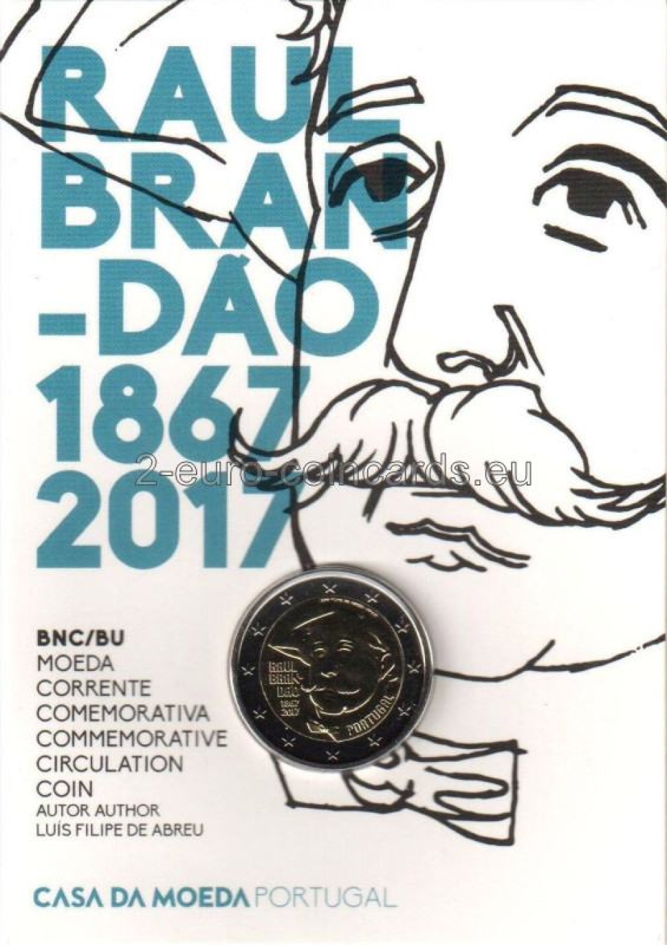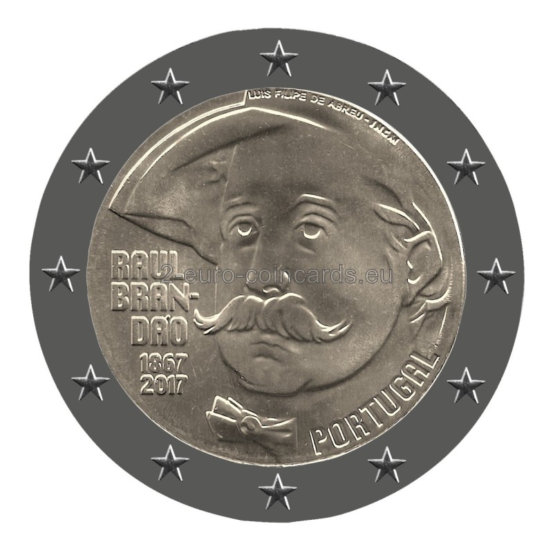 Motív znázorňuje tvár Raúla Brandãa. Na ľavej strane sa nachádza nápis RAÚL BRANDÃO a pod ním roky „1867“ a „2017“. Vpravo dole je uvedený nápis vydávajúcej krajiny „PORTUGAL“ a vpravo hore je zobrazené meno autora „LUIS FILIPE DE ABREU“, po ktorom nasleduje značka Portugalskej mincovne Imprensa Nacional „INCM“.