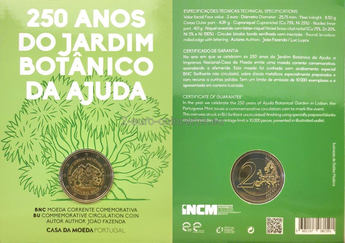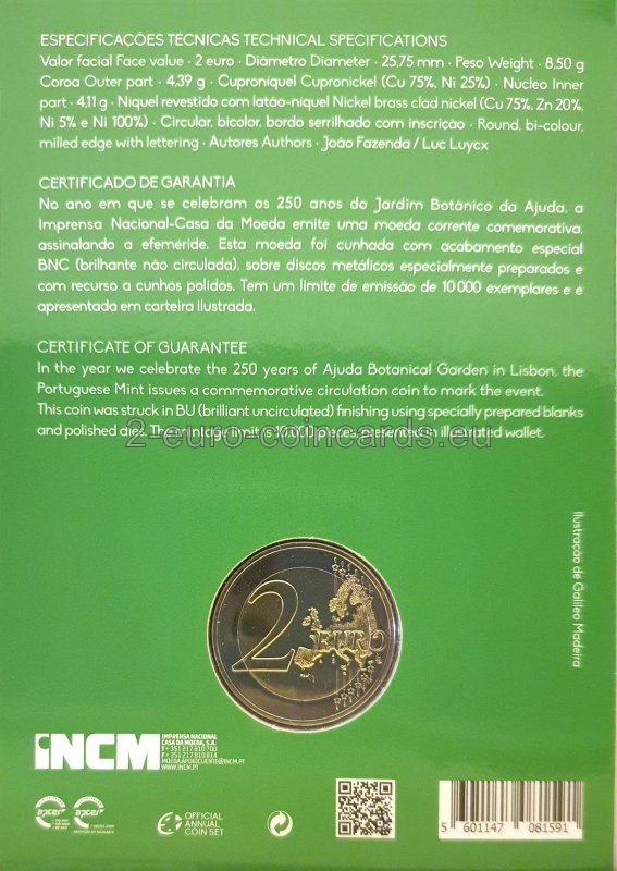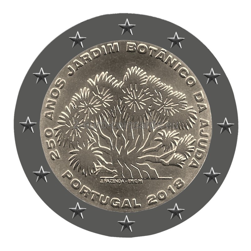Motív zobrazuje Dracenu, ktorá je najstarším stromom v botanickej záhrade Ajuda a je zároveň jej symbolom. V hornej časti vzoru je v polkruhu v smere zľava doprava uvedený nápis „250 ANOS JARDIM BOTÂNICO DA AJUDA“. V dolnej časti sa v polkruhu v smere zľava doprava nachádza nápis „PORTUGAL 2018“. Pod motívom stromov sú na ľavej strane uvedené iniciály umelca „João Fazenda“ a na pravej strane značka portugalskej mincovne Imprensa Nacional „INCM“.