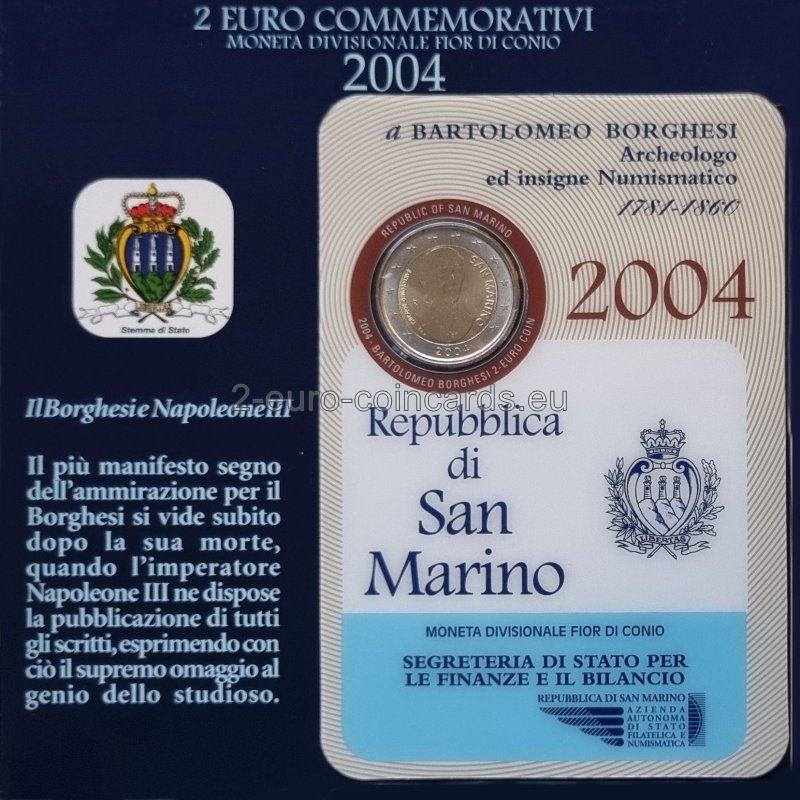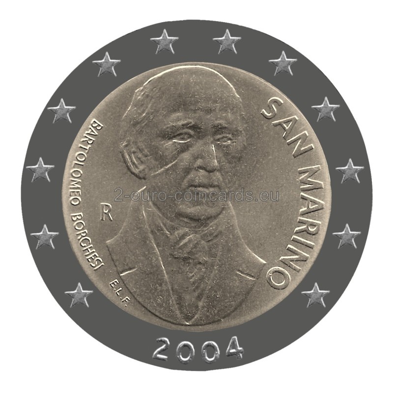 V strede vnútorného disku je portrét Bartolomea Borgesiho. Na ľavej strane je písmeno mincovne "R", meno učenca "BARTOLOMEO BORGHESI" je napísané pozdĺž ľavého okraja disku a je tu aj označenie umelca ("E.L.F."). Pri pravom okraji je uvedený názov vydávajúceho štátu "SAN MARINO". V strede v spodnej časti je rok vydania „2004“.