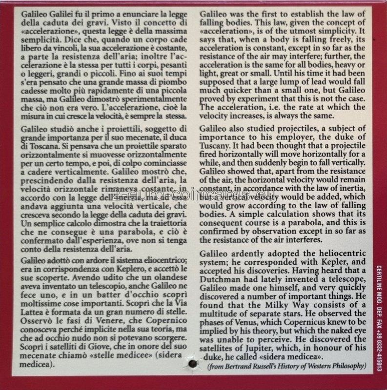 | Galileo Galilei | Model Galileiho kyvadla v kostole Panny Márie Andelskej v Ríme |