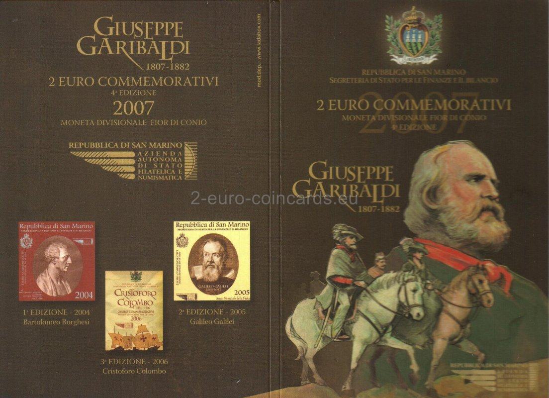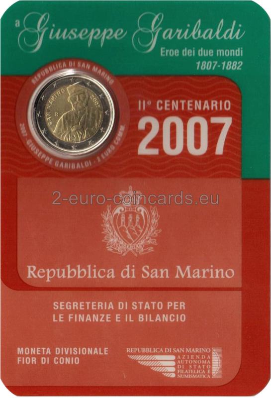 Vo vnútornom kruhu mince je vyobrazený portrét Giuseppeho Garibaldiho. Pozdĺž kruhu je na ľavej strane vyrytý nápis „SAN MARINO“ a na pravej strane označenie roka „2007“. Značka mincovne „R“ a iniciály autora Ettore Lorenzo Frapiccini „E.L.F.“ sa nachádzajú na ľavej strane vnútorného kruhu.
