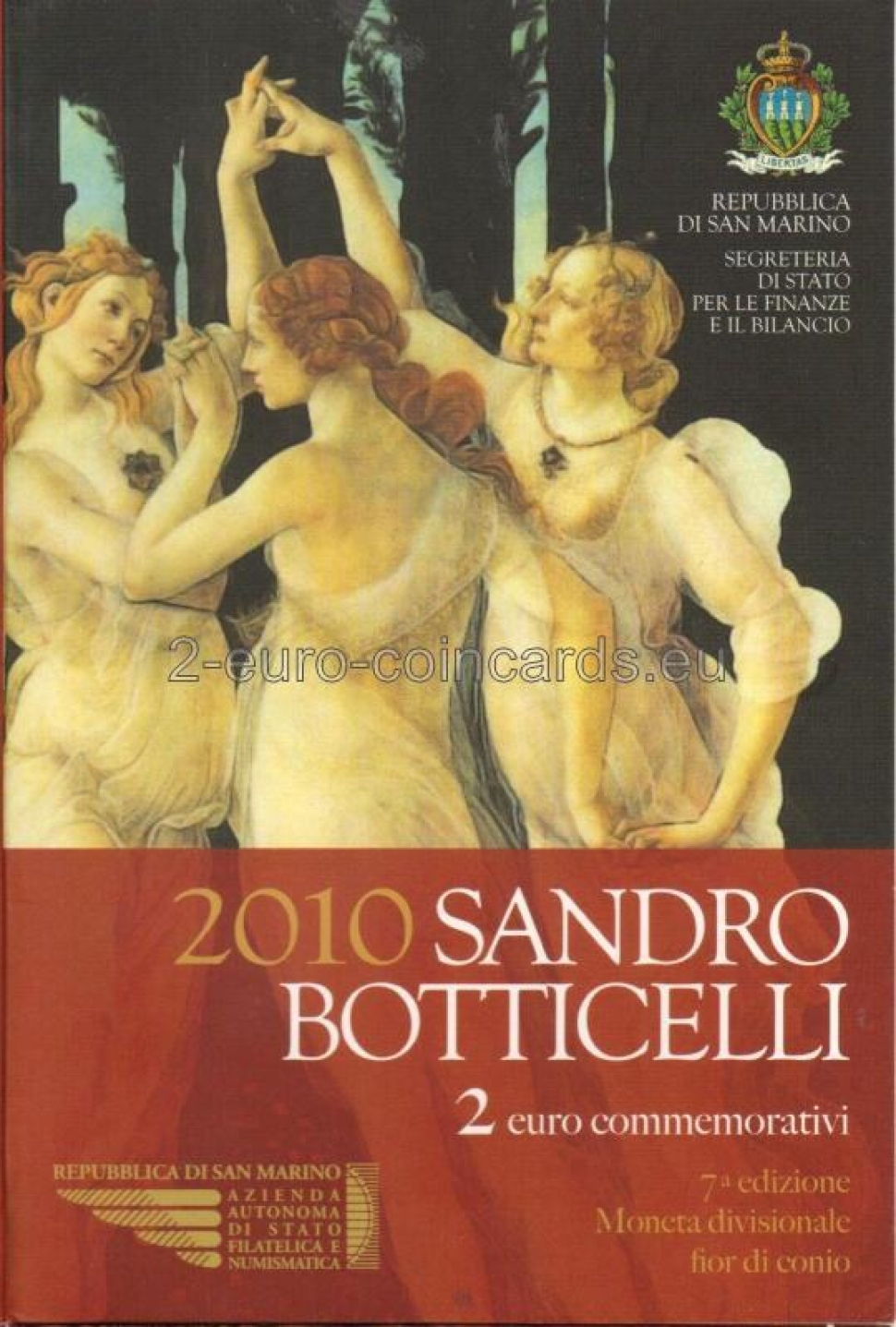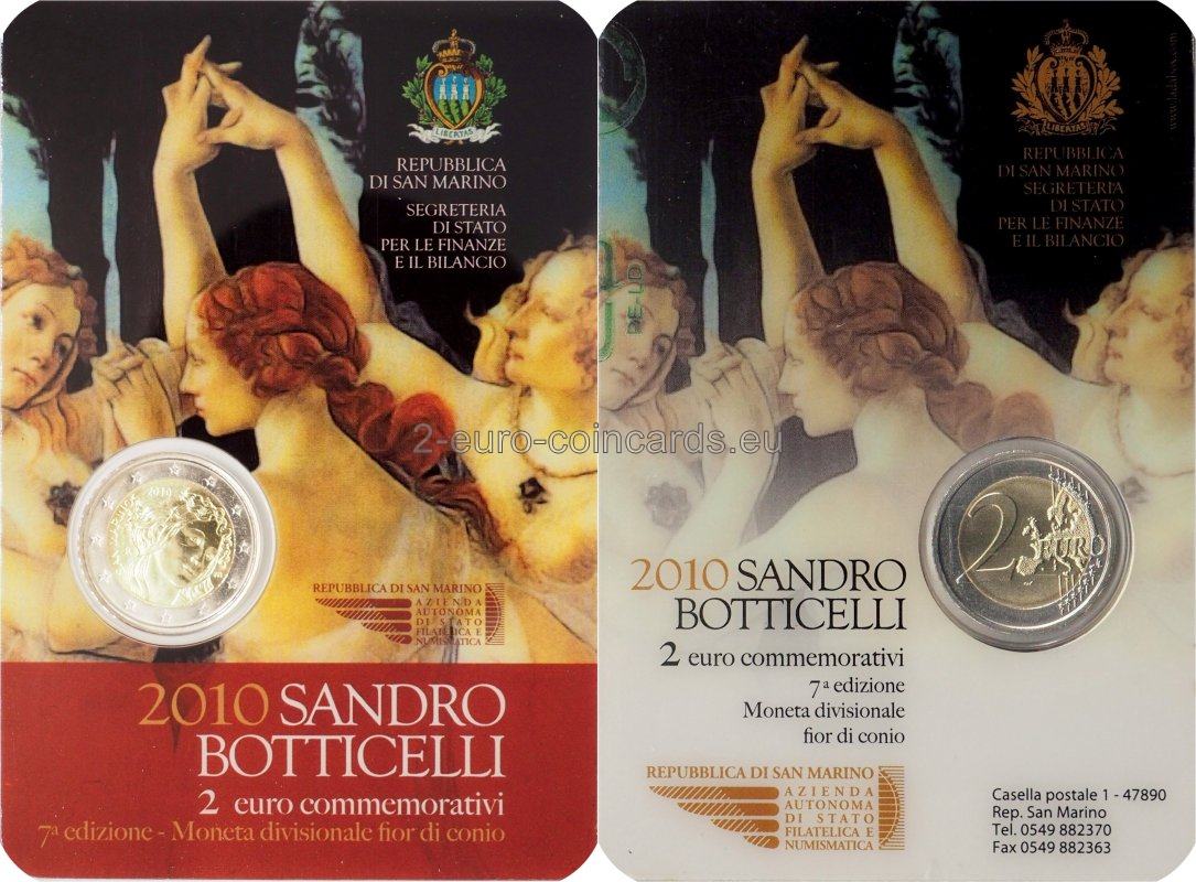 Vnútorná časť mince zobrazuje Radosť, detail jednej z troch tancujúcich grácií, ktorá je voľne inšpirovaná obrazom „Jar“ (La Primavera) Sandra Botticelliho. Hore je vročenie „2010“. Naľavo je názov vydávajúcej krajiny „SAN MARINO“ a znak mincovne „R“, napravo iniciála „m“ autora Roberta Mauriho.