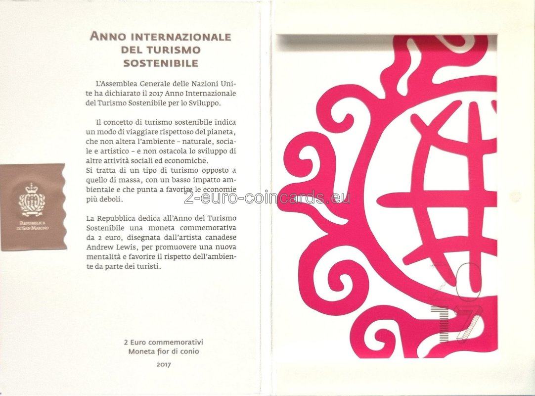 Valné zhromaždenie Organizácie Spojených národov schválilo rok 2017 za Medzinárodný rok udržateľného cestovného ruchu pre rozvoj. Vízia udržateľného cestovného ruchu predstavuje taký druh cestovania, ktorý rešpektuje planétu, nemení prírodné, sociálne ani umelecké prostredie a nebráni rastu sociálnych a hospodárskych činností. Je opakom hromadného cestovného ruchu a snaží sa podporovať najslabšie ekonomiky. Sanmarínska republika venovala tejto téme pamätnú euromincu s cieľom podporovať nový spôsob myslenia a nabádať turistov na rešpektovanie životného prostredia. Oficiálne otvorenie Medzinárodného roka udržateľného cestovného ruchu pre rozvoj sa uskutočnilo 18. januára 2017 v Madride.