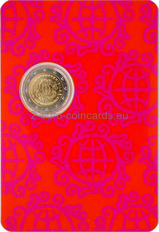 Vo vonkajšom prstenci mince je vyobrazených dvanásť hviezd vlajky Európskej únie ktoré symbolizujú dokonalosť, celistvosť a ideál jednoty a pripomína aj počet mesiacov a ciferník.