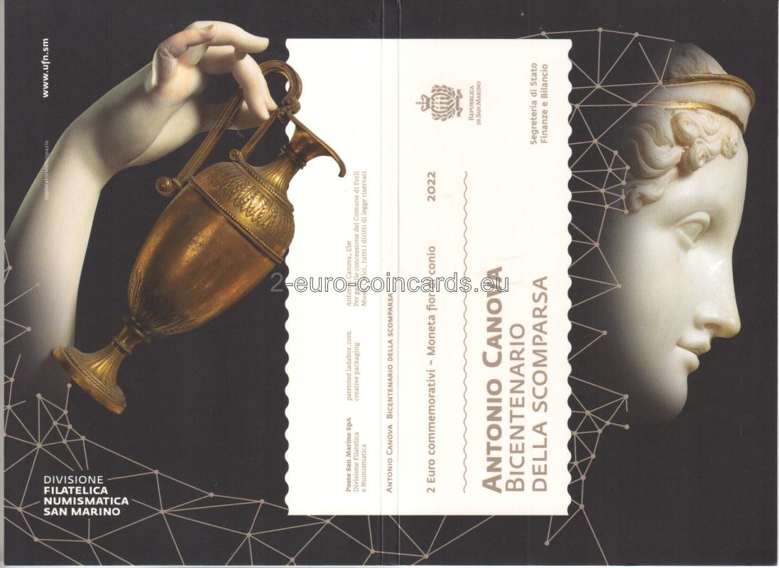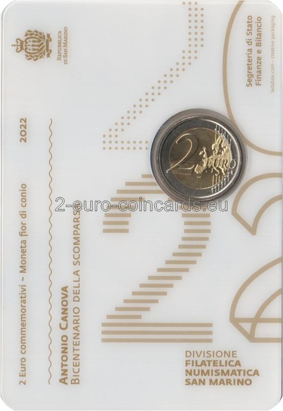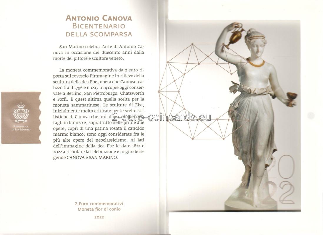 V strede vnútorného kruhu je vyobrazená bohyňa Héba prevzatá z diela Antonia Canovu, ktoré sa nachádza v umeleckej galérii mestského múzea San Domenico vo Forlì. Na okraji disku je uvedený názov vydávajúceho štátu "SAN MARINO" (vpravo) a meno umelca "CANOVA" (vľavo). Po stranách sochy sú vyryté aj letopočty "1822" (vľavo) a "2022" (vpravo), iniciálky autora mince Antonia Vecchia "AV." a značka rímskej mincovne (písmeno "R").