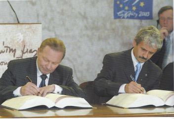 | Oficiálna ceremónia rozšírenia EU v Dubline | Prístupovú zmluvu podpisujú prezident R.Schuster a premiér M. Dzurinda |
