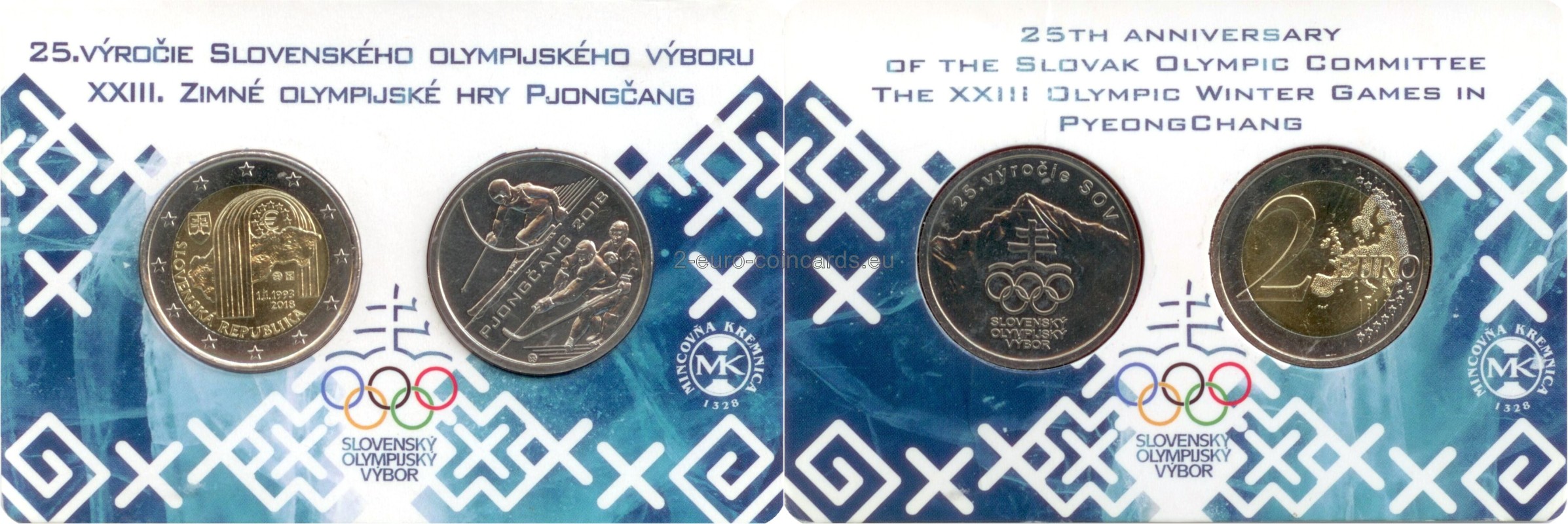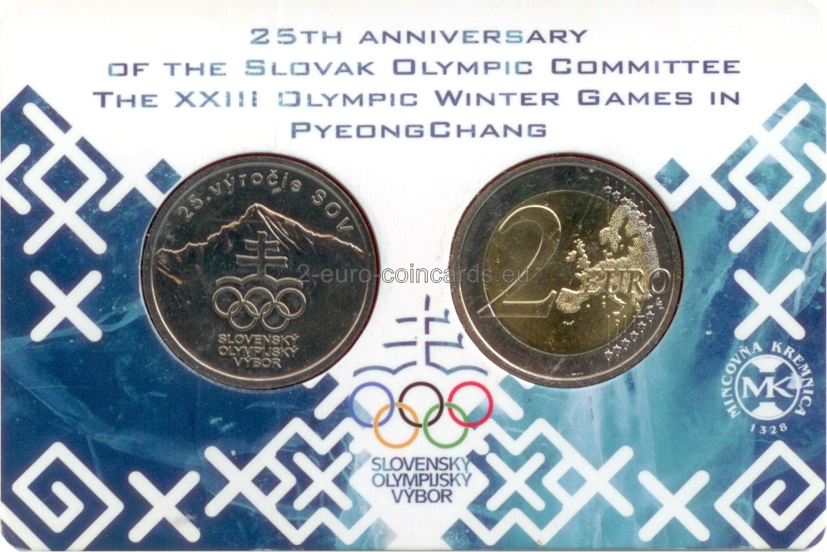 Druhá minca je venovaná 25. výročiu zaolženia SOV, na rubovej starne sa nachádza Kriváň, olympijské logo so slovenským dvojkrížom, a textom 25. výročie SOV. Lícová strana zobrazuje zjazdára a hokejistov medzi nimi je nápis Pjongčang.