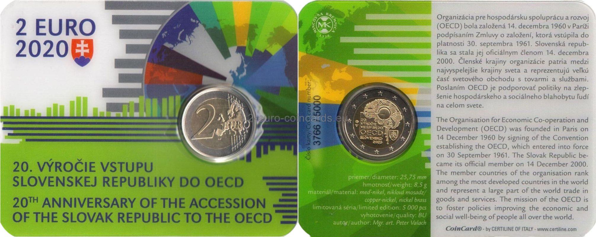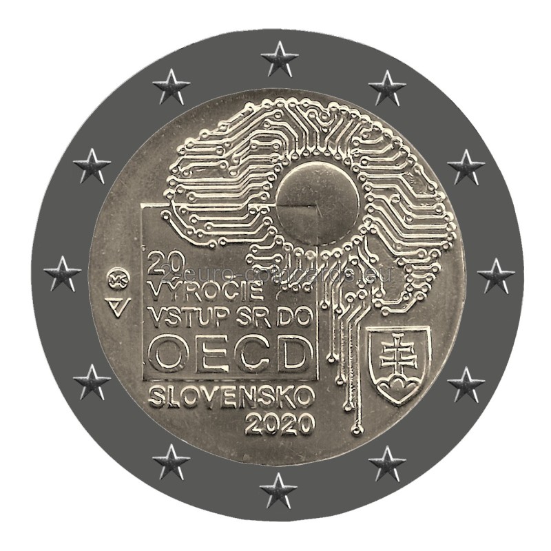 Vpravo hore na národnej strane vzoru je vyobrazená koncepcia digitálneho humanizmu – tlačené obvody v tvare ľudského mozgu a v jeho strede kruh, ktorý predstavuje mikroprocesor. Pri pravom dolnom okraji je umiestnený štátny znak Slovenska. Vo štvorci, ktorý sa čiastočne prekrýva s hlavným motívom vzoru, sú vpísané slová „20. VÝROČIE“ a „VSTUP SR DO OECD“. Pod štvorcom je uvedený názov vydávajúcej krajiny „SLOVENSKO“ a pod ním rok vydania „2020“. Medzi štvorcom a ľavým okrajom vzoru sa nachádza značka Mincovne Kremnica pozostávajúca z písmen „MK“ medzi dvoma razidlami. Pod značkou mincovne sú štylizované písmená „PV“ označujúce autora vzoru Petra Valacha. Vo vonkajšom prstenci mince je vyobrazených dvanásť hviezd vlajky Európskej únie ktoré symbolizujú dokonalosť, celistvosť a ideál jednoty a pripomína aj počet mesiacov a ciferník.