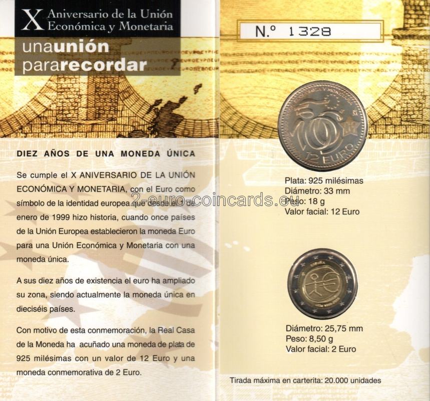 VÝROČIE HOSPODÁRSKEJ A MENOVEJ ÚNIE s eurom ako symbolom európskej identity, ktorá sa zapísala do histórie 1. januára 1999, keď jedenásť krajín Európskej únie zaviedlo menu euro pre hospodársku a menovú úniu s jednotnou menou. Po desiatich rokoch existencie euro rozšírilo svoju oblasť a v súčasnosti je jednotnou menou v šestnástich krajinách. Kráľovská mincovňa pri tejto príležitosti vyrazila s striebornú mincu rýdzosťou 925 v hodnote 12 eur a pamätnú mincu v hodnote 2 eurá.