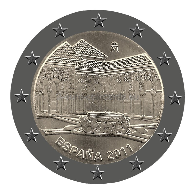Pokračujúc v téme pamätných mincí v hodnote 2 eur, ktoré boli iniciované v roku 2010 na pripomenutie objektov alebo miest zapísaných do Zoznamu svetového dedičstva UNESCO, FNMT-RCM (Fábrica Nacional de Moneda y Timbre - Real Casa de la Moneda) vydáva druhú mincu, ktorá je pri tejto príležitosti venovaná Alhambre, Generalife a Albaicínu v Granade (zapísané v roku 1984 a rozšírené v roku 1994). Albaicín a Alhambra sa nachádzajú na dvoch susedných kopcoch a tvoria stredoveké jadro Granady, ktoré dominuje modernému mestu. Na východnej strane pevnosti a kráľovského sídla Alhambra sa nachádzajú nádherné záhrady Generalife, vidieckeho sídla emirov, ktorí vládli tejto časti Španielska v 13. a 14. storočí. Štvrť Albaicín uchováva bohatú zbierku maurských stavieb harmonicky zmiešaných s tradičnou andalúzskou architektúrou. Jej zaradenie do tohto zoznamu znamená predovšetkým medzinárodný záväzok Španielska zachovať a chrániť túto pamiatkovú lokalitu a jej okolie s osobitnou starostlivosťou.