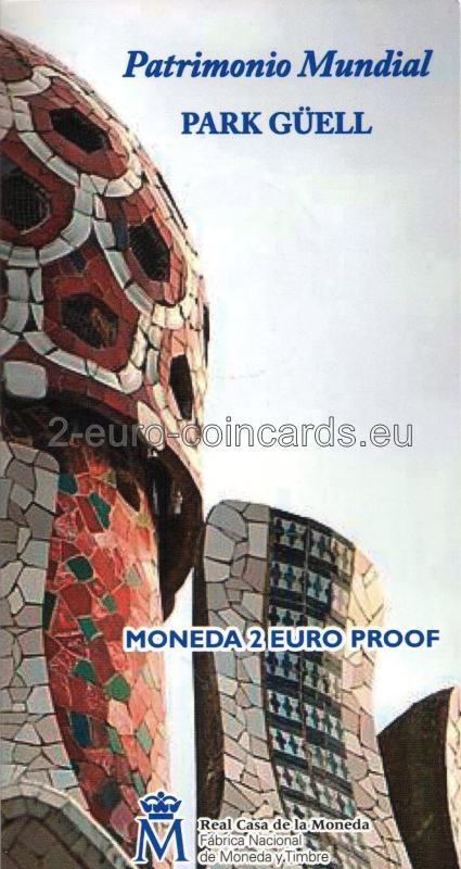 Pokračujúc v téme pamätných mincí v hodnote 2 eur, ktoré boli iniciované v roku 2010 a sú určené na pripomenutie tovarov alebo miest zapísaných na zoznam svetového dedičstva UNESCO, FNMT-RCM (Fábrica Nacional De Moneda Y Timbre - Real Casa De La Moneda) vydáva piatu mincu, ktorá je pri tejto príležitosti venovaná dielam Antoniho Gaudího (zapísaným v rokoch 1984 a 2005), ktorými sú: Park Güell, Palau Güell, Casa Milà, Casa Vicens, fasáda Nativity a krypta Sagrada Família, Casa Batló a krypta Colonia Güell. Týchto sedem budov, ktoré architekt postavil v Barcelone (1852 - 1926), je výrazom veľmi osobného štýlu, ktorý zahŕňa nielen architektúru, ale aj záhradníctvo, sochárstvo a iné dekoratívne umenie vrátane nábytku.