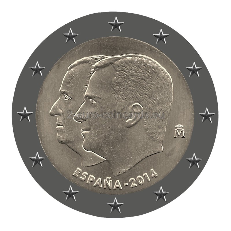 Na minci sú vyobrazené prekrývajúce sa portréty kráľa Felipeho VI. a kráľa Juana Carlosa I. V spodnej časti mince je uvedený názov vydávajúcej krajiny a rok vydania: „ESPAÑA – 2014“. Vpravo je značka mincovne (korunované písmeno "M").