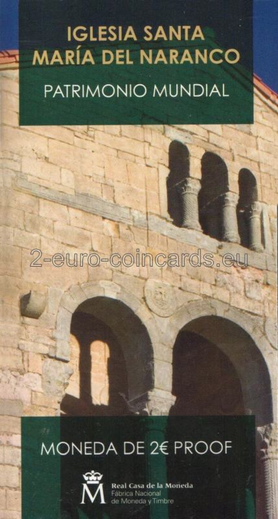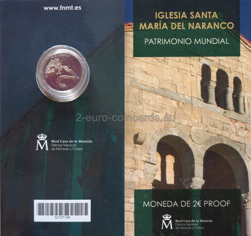 Španielska kráľovská mincovňa dala do obehu ôsmu 2-eurovú mincu pripomínajúcu objekty a miesta zaradené do Zoznamu svetového dedičstva. V roku 2017 je minca venovaná pamiatkam v Oviede a Astúrskom kráľovstve, ktoré boli zapísané v roku 1985. Na minci je vyobrazený kostol Santa María del Naranco ako reprezentatívna stavba asturského predrománskeho umenia, ktorá neskôr zohrala veľmi dôležitú úlohu vo vývoji sakrálnej architektúry v celom Španielsku.