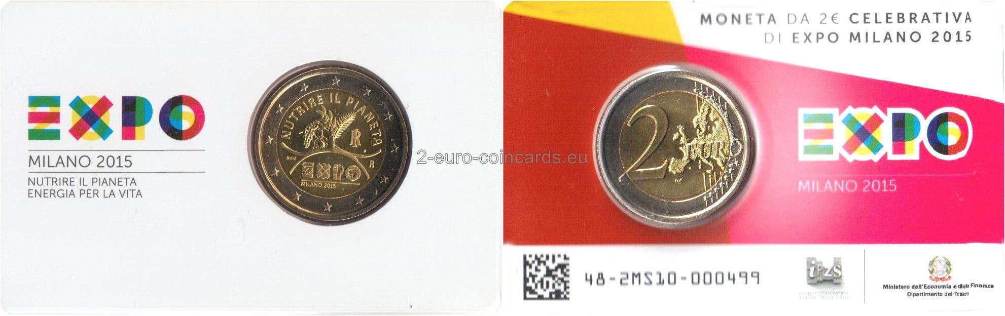 Na obraze je znázornená kompozícia symbolizujúca plodnosť Zeme: na polkruhu predstavujúcom zemeguľu sa chystá vyklíčiť vodou zalievané semeno. Nad Zemou z kmeňa stromu vyrastá vinič, olivová ratolesť a obilný klas. Obklopuje ich nadpis „NUTRIRE IL PIANETA“. Vľavo sa nachádzajú iniciály grafičky Márie Grazie Urbaniovej „MGU“. Vpravo sa nachádza monogram Talianskej republiky „RI“ a monogram rímskej mincovne „R“. V strede je vyobrazené logo EXPO MILANO 2015.