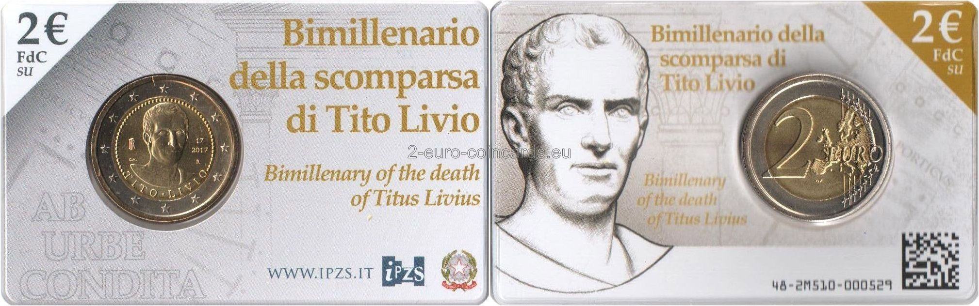 Motívom mince je busta rímskeho historika Tita Livia prebraná z diela Lorenza Lareseho Morettiho. Vľavo je uvedené logo Talianskej republiky „RI“ a iniciály autorky návrhu „C.M.“ (Claudia Momoni). Vpravo je uvedený rok smrti Livia „17“, rok vydania mince „2017“ a značka rímskej mincovne „R“. Okolo motívu sú v kruhu umiestnené bodky a nápis „TITO • LIVIO“.