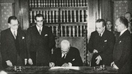 | Enrico De Nicola podpisuje 27.12.1947 vyhlásenie ústavy | Ústava z roku 1947 |