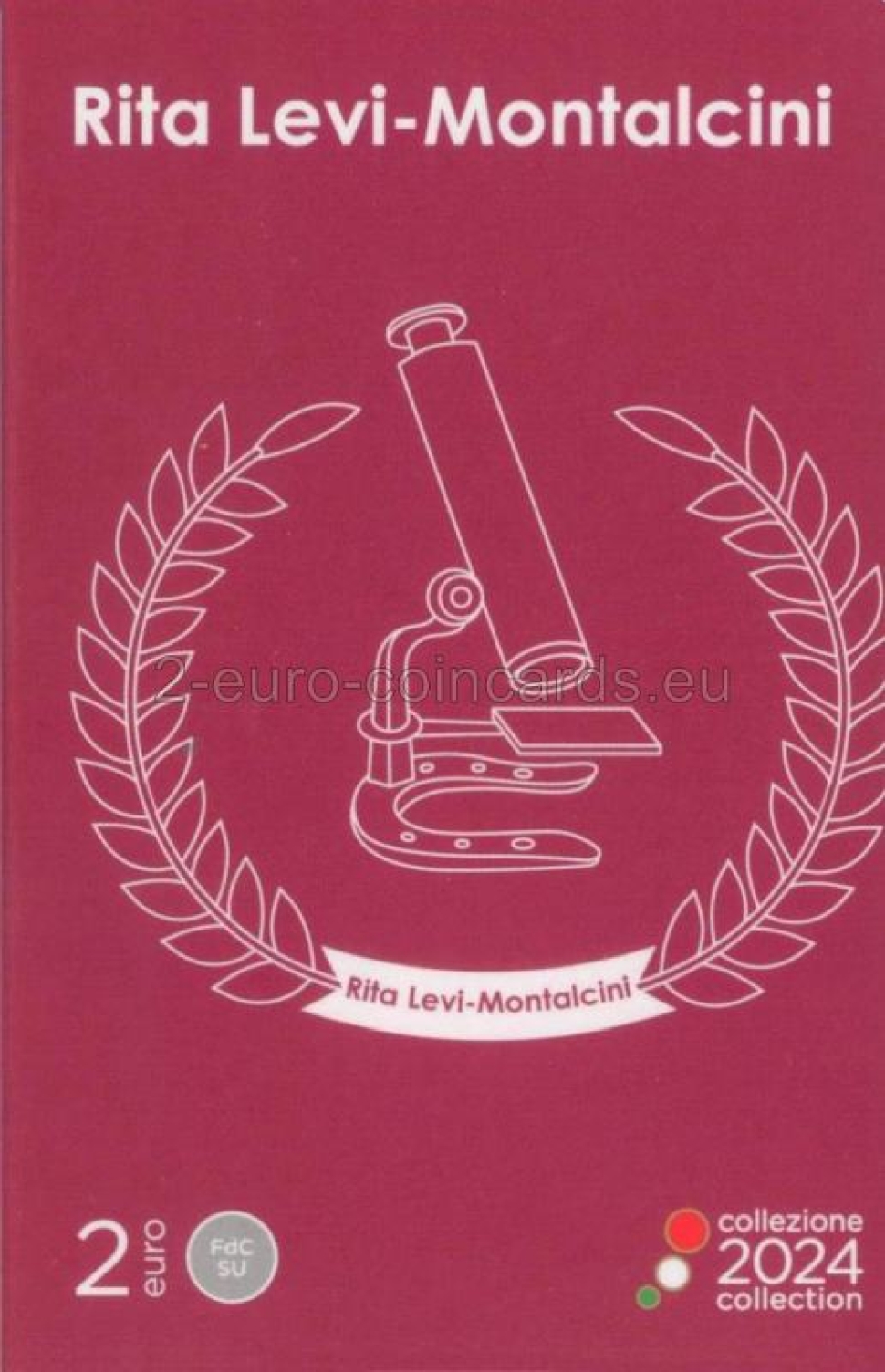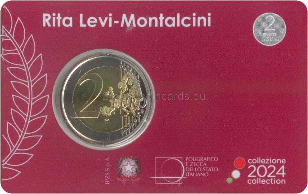 Motív v popredí zobrazuje portrét Rity Levi-Montalciniovej inšpirovaný fotografiou Manuely Fabbriovej. Na pozadí je vidieť mikroskop umiestnený na podstavci v tvare podkovy pôvodne z medaily, ktorú navrhol Gino Levi-Montalcini, brat uznávanej vedkyne, ako talizman pre šťastie pri príležitosti udeľovania Nobelovej ceny za medicínu v roku 1986. Nad portrétom je v polkruhu uvedený nápis „RITA LEVI-MONTALCINI“; vľavo sa nachádza skratka Talianskej republiky „RI“ a značka rímskej mincovne „R“. Pod portrétom je uvedený rok vydania mince „2024“, zatiaľ čo iniciály autorky motívu „SP“ Silvie Petrassiovej sú umiestnené vpravo