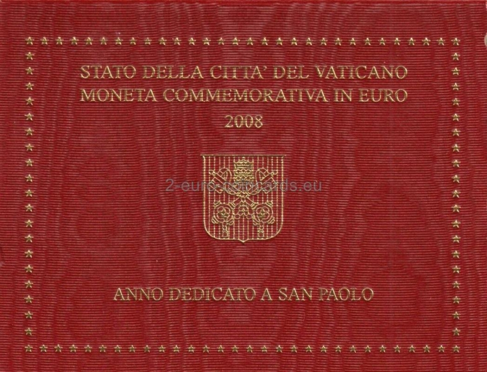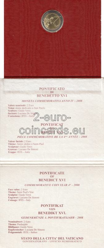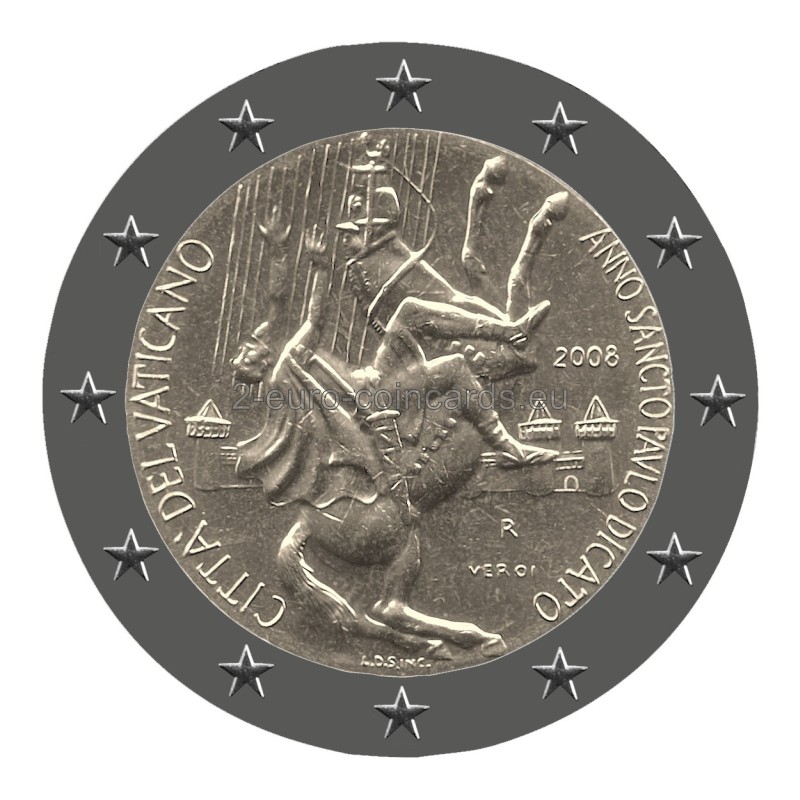Na vnútornej strane mince je zobrazená konverzia Svätého Pavla: Svätý Pavol je na ceste do Damasku, ktorý je zobrazený v pozadí, oslepený svetlom vyžarovaným z oblohy a spadne zo vzpínajúceho sa koňa. Obrázok dopĺňajú dva nápisy v polkruhu: vľavo vydávajúci štát „CITTÀ DEL VATICANO“ a vpravo legenda: „ANNO SANCTO PAULO DICATO“. Rok „2008“ sa nachádza vpravo, ako aj značka peňažnej meny „R“ a meno umelca „VEROI“. Úplne dolu sa nachádzajú iniciály rytca Luciana De Simoni „L.D.S. INC.“.