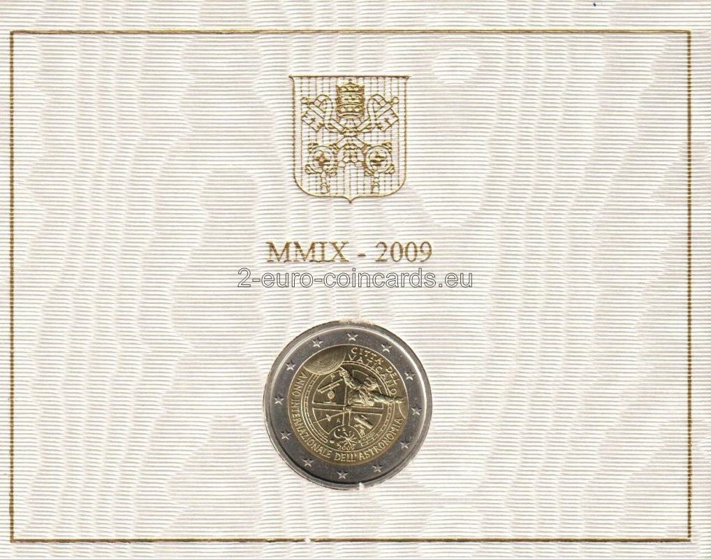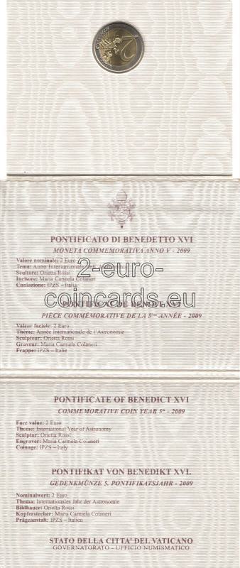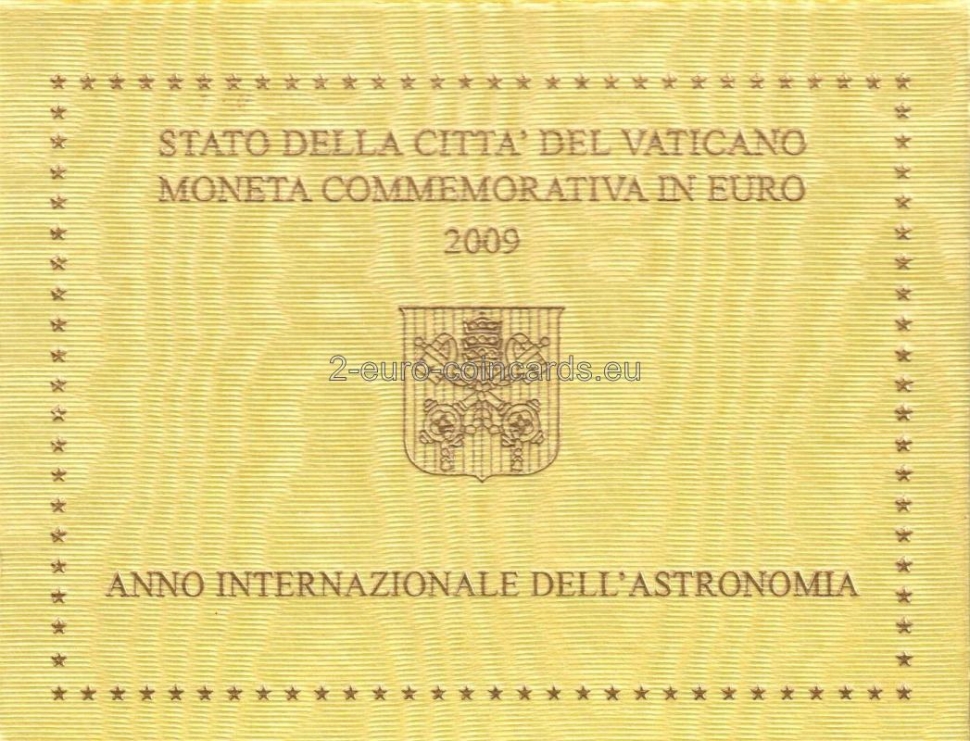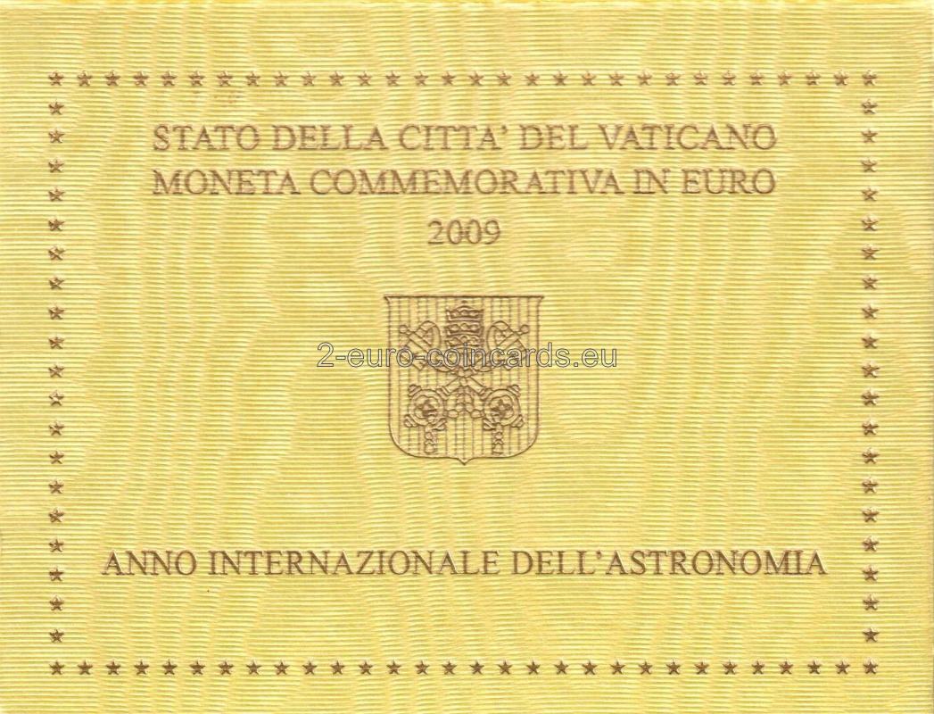 Vo vnútornej časti mince je zobrazená alegória vzniku hviezd a planét a viaceré astronomické prístroje. Dole je uvedená rok 2009, okolo sú značky mincovne (písmeno "R"), značky rytca "M.C.C. INC." a umelca "O.ROSSI". Motív je vľavo dole obklopený nápisom „ANNO INTERNAZIONALE DELL’ASTRONOMIA“ (Medzinárodný rok astronómie) a vpravo hore názvom vydávajúcej krajiny „CITTÁ DEL VATICANO“.