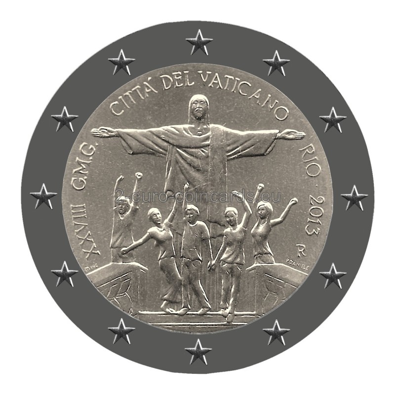 Na vzore je zobrazený erb kardinála camerlenga a nad ním symbol Apoštolskej komory, dva malé kríže, vľavo slová „CITTÀ DEL VATICANO“ a vpravo nápis „SEDE VACANTE MMXIII“. Kamerlango je jedným z najvyšších hodnostárov pápežskej kúrie. V čase pápežskej sedisvakancie sa camerlengo stáva hlavou rímskokatolíckej cirkvi i štátu Vatikán.