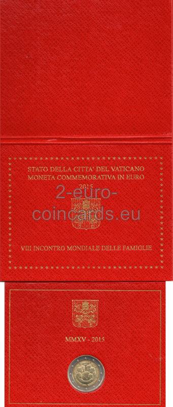 Vzor zobrazuje dve rodiny a ich ideálne objatie Zeme. V hornej časti mince sa nachádza rok vydania „2015“. Okolo vzoru sa nachádza v polkruhu zľava doprava nápis „VIII INCONTRO MONDIALE DELLE FAMIGLIE“ (VIII. Svetové stretnutie rodín) a v spodnej časti „CITTA' DEL VATICANO“. Vľavo sú značky umelca "C.Principe" a rytca "E.L.F. INC.". Na pravej strane je označenie mincovne (písmeno "R").