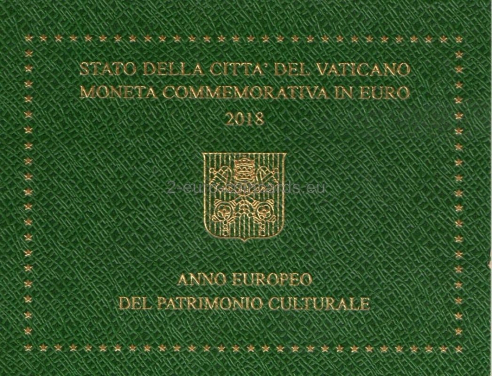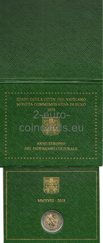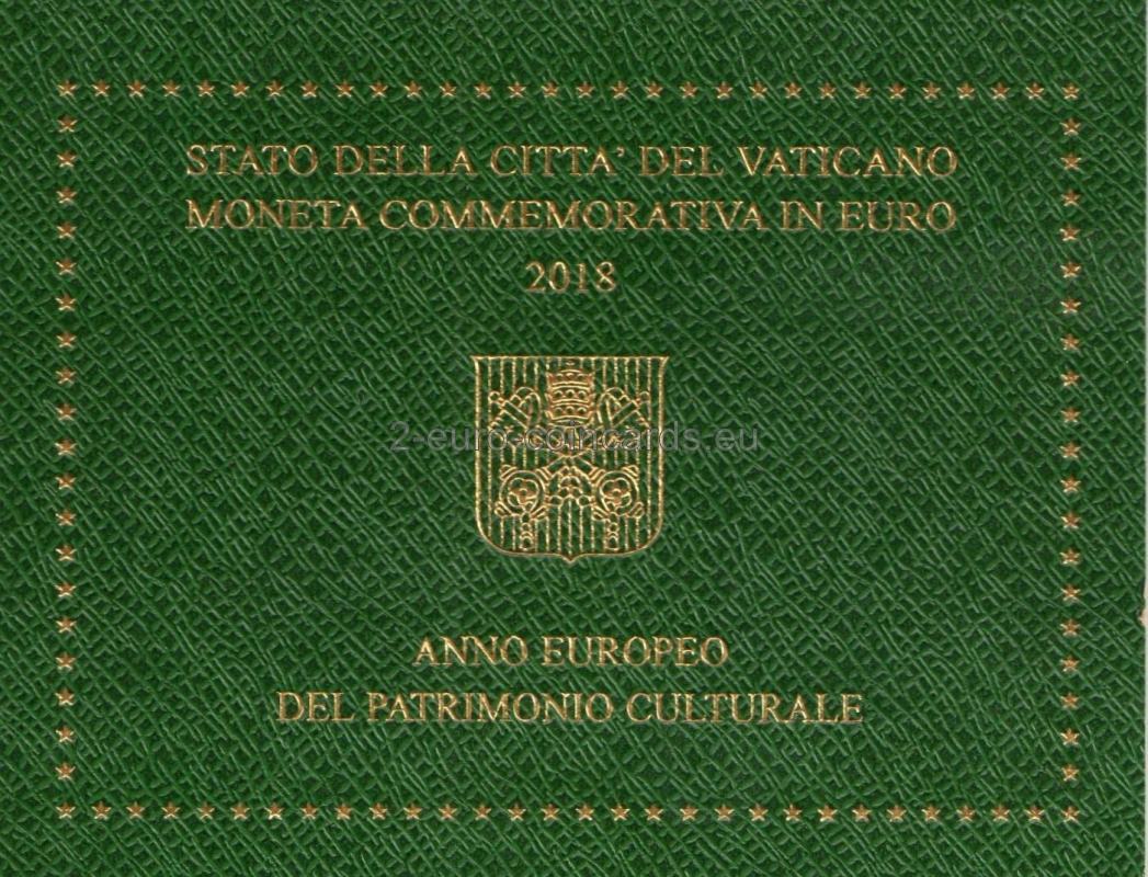 Ústredným motívom je súsošie Laokoón a jeho synovia, takisto známe pod názvom Laokontovo súsošie. Ide o zásadné dielo svetového sochárstva, ktoré tvorí základ zbierky Vatikánskych múzeí. Dolu v strede je umiestnený nápis vydávajúcej krajiny „Città del VATICANO“. V polkruhu v smere zľava doprava sa nachádza nápis „ANNO EUROPEO DEL PATRIMONIO CULTURALE“. V pravej hornej časti je uvedený rok vydania „2018“ a značka mincovne „R“. V pravej dolnej časti sa nachádza meno umelkyne „D. LONGO“ a značky rytca "C.M. INC".