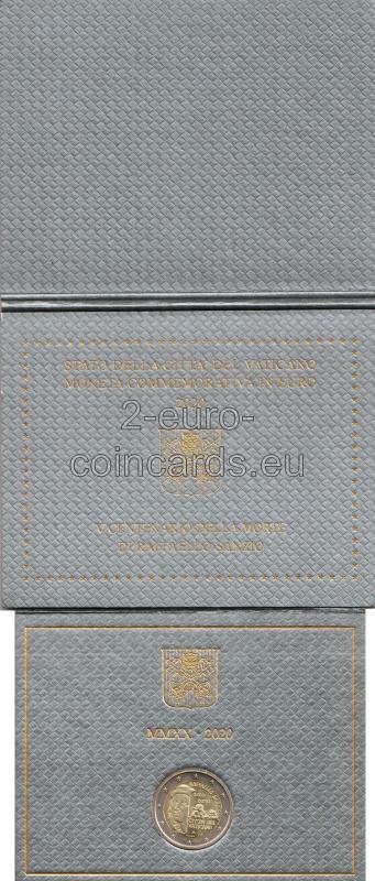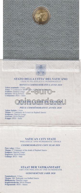 Vnútorný disk je rozdelený na dve časti. V ľavej časti je autoportrét Rafaela Santiho z fresky Aténska škola, v pravej časti je dvojica anjelov, fragment z obrazu Sixtínska madona. Na okraji disku vpravo je vyryté umelcovo meno "RAFFAELLO SANTI". Na pravej strane sú tiež letopočty Rafaelovej smrti "1520" a vydania mince "2020". Pod ním je názov vydávajúceho štátu "CITTA' DEL VATICANO" a značka mincovne (písmeno "R"). Pozdĺž spodnej časti kruhu je umiestnené meno umelca "D.LONGO" a iniciály rytca "SP INC".