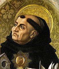 Svätý Tomáš Akvinský bol taliansky filozof a teológ, prvý zo scholastických cirkevných učiteľov, najväčší predstaviteľ katolíckej filozofie, žiak Alberta Veľkého. Tomáš sa narodil na zámku Roccasecca medzi Neapolom a Rímom v šľachtickej rodine ako tretí syn grófa Landolfa z Akvinu a kontesy Teodory. Rodina ho dala ako päťročného na výchovu do benediktínskeho opátstva Monte Cassino, keďže tam pôsobil ako opát Landolfov brat. Ako chlapec prichádza na univerzitu v Neapoli, kde sa stretáva so štúdiom siedmich slobodných umení a dostáva sa mu prírodovedného vzdelania. V tom čase Tomáša veľmi priťahovala rehoľa dominikánov, a tak sa rozhodol do nej vstúpiť. Stalo sa tak v roku 1243, no Tomáš musel prekonávať ostrý nesúhlas rodiny. Rodičia nevedeli pochopiť, ako sa môže noblesný mladý muž stáť žobravým rehoľníkom. Na príkaz matky bol Tomáš dokonca bratmi v máji roku 1244 uväznený. V domácom väzení zostal takmer dva roky, kým mu jeho sestra nepomohla k úteku. A bola to práve tá sestra, ktorá mu do väzenia priniesla Bibliu, Aristotelovu Metafyziku a Sentencie Petra Lombardského. Dominikánska rehoľa Tomáša pôvodne poslala kvôli zdokonaleniu vzdelania do Paríža, no do tohto centra vtedajšej vzdelanosti prišiel až po svojom úteku z domáceho väzenia. V Paríži sa stal poslucháčom Alberta Veľkého, ktorý si ho vzal po trojročnom štúdiu so sebou do Kolína, kde Tomáš študoval priamo pod jeho vedením ďalšie štyri roky. V rokoch 1252 až 1272 bol učiteľom teológie v Paríži a v roku 1256 dosahuje titul doktora teológie a profesora na univerzite, pričom vrchol svojej vedeckej dráhy Tomáš dosiahol v posledných rokoch svojej akademickej činnosti (1269 – 1272). Vtedy sa stal najoslavovanejším učiteľom teológie. Jeho názor pri každej spornej otázke bol vždy vysoko cenený a do mnohých polemík zasiahol rozhodujúcim spôsobom. Z Neapola ho pozval pápež Gregor X. na druhý lyonský koncil (1274), kde sa malo konať rokovanie s predstaviteľmi byzantskej cirkvi, ale Tomáš začal chorľavieť. Na koncil sa už nedostavil; zomrel zoslabnutý po ceste v cisterciátskom kláštore Fossa Nuova 7. marca 1274. Tomáš napísal počas svojho života viac než 60 diel.